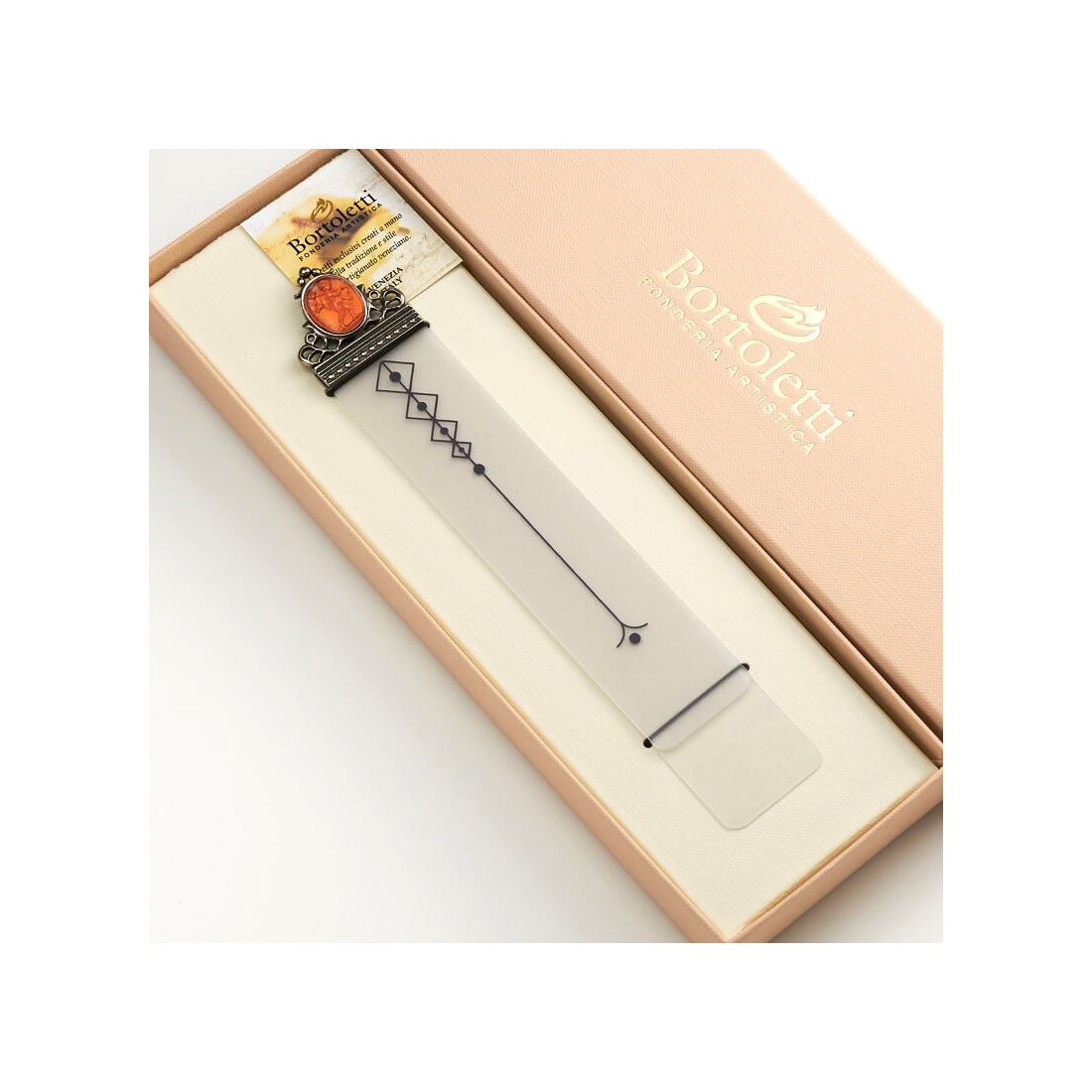 Et håndlavet bogmærke til et klassisk publikum, som er resultatet af Bortoletti og hans mesterjuvelerers kontinuerlige forskning inden for design. Forarbejdningen af glaspasta er unik og gået i arv gennem generationer af Muranos mesterglasmagere.