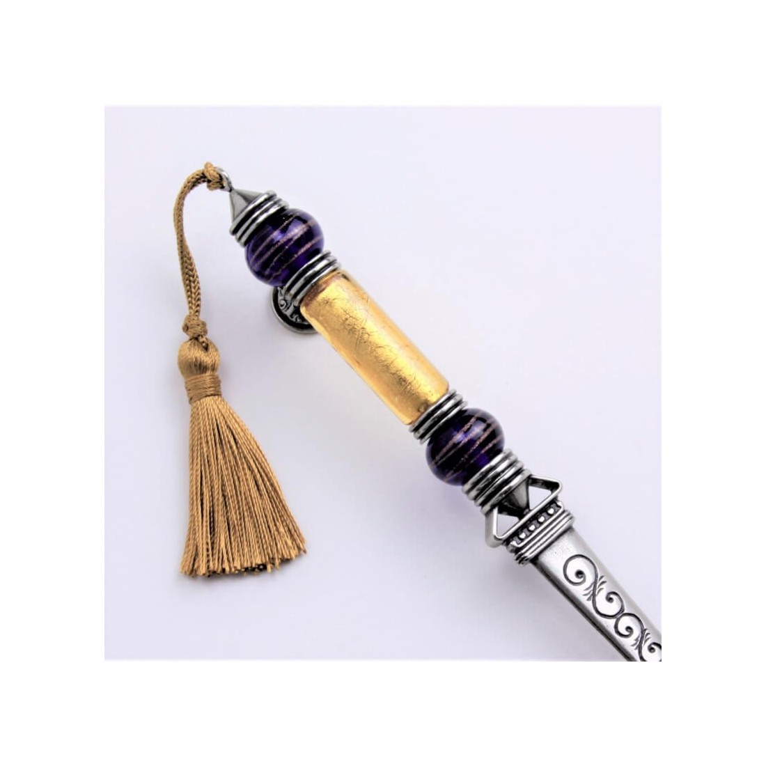 Hvid bronze, brevåbner og forstørrelsesglas. TL05 Casanova. Den centrale perle er Murano-glas med håndlavet 24-karat bladguld.