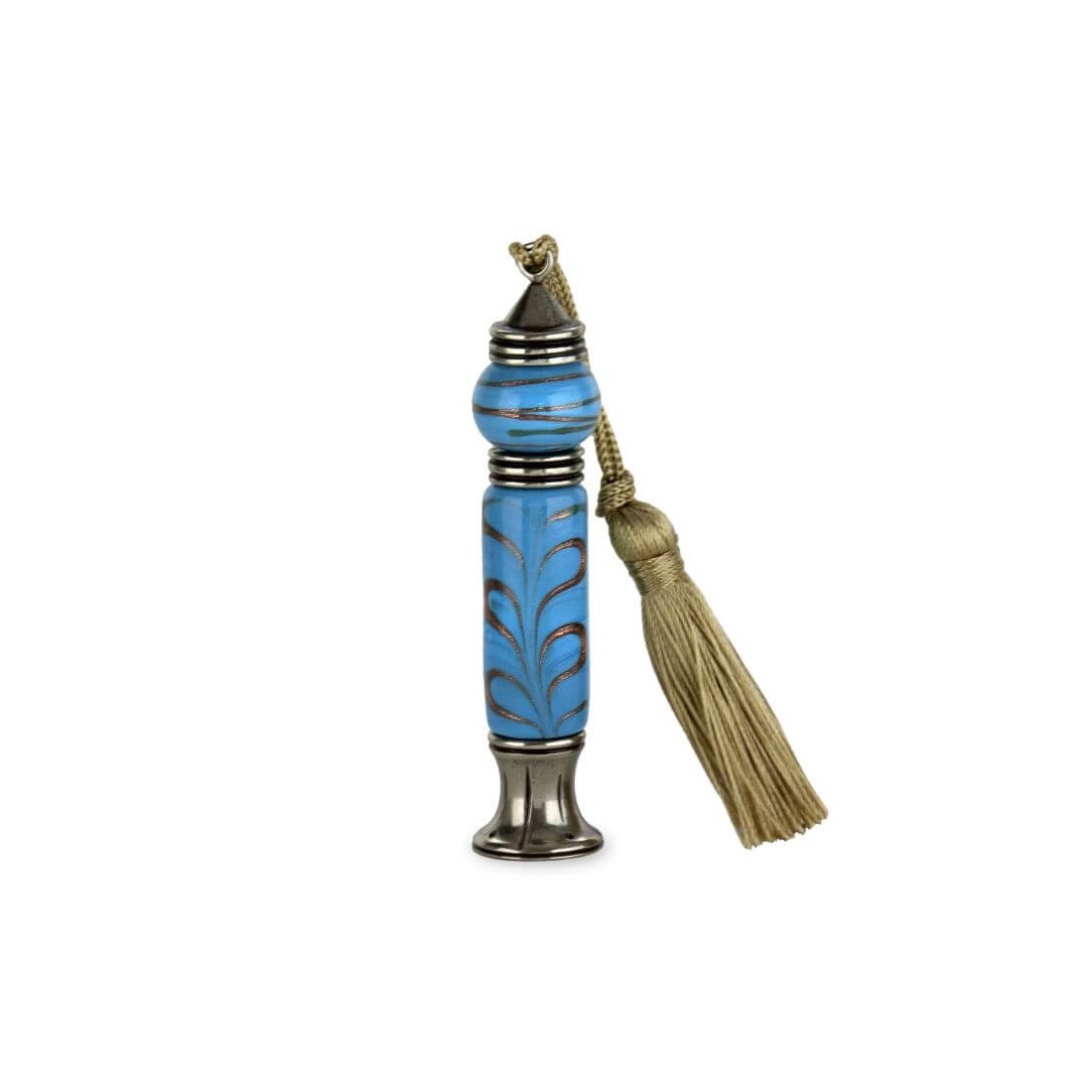 Denne udsøgte voksforsegling er lavet af murano glas, dekoreret med tynde tråde af Aventurin af Master Glassmakers Bortoletti. Den fås i fem smukke farver: sort, blå, turkis, rød og elfenben. Du kan også vælge de initialer eller symboler, der passer bedst til din stil.