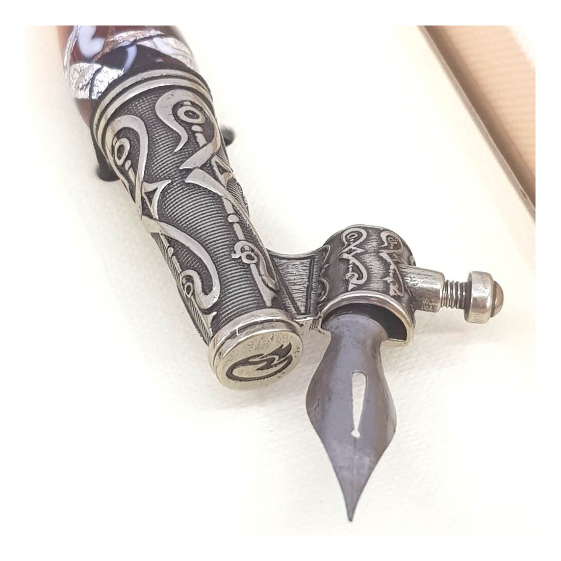 Skrå kalligrafisk pen - glas sølvblad