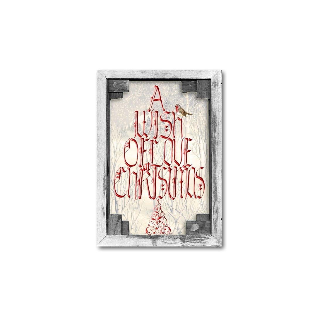 Et ønske af kærlighed til jul. Vidunderlige følelser for den vidunderlige tid af året. Rød gotisk stil kalligrafi udlagt som et træ på en vinter Eventyrland baggrund med røde glitter mousserende på kalligrafiske base.