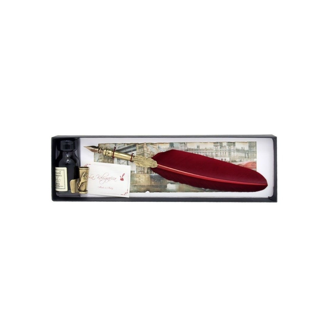 Denne fjedervæske er færdig med en karakteristisk messingfarvet skaft af fjerdesign og inkluderer en flaske sort blæk med matchende messingfarvepenstativ. Sættet leveres pakket i en premium London-inspireret gaveæske til at skabe et moderne gavesæt perfekt til kalligrafi og kunstelskere. Fremstillet i Italien.