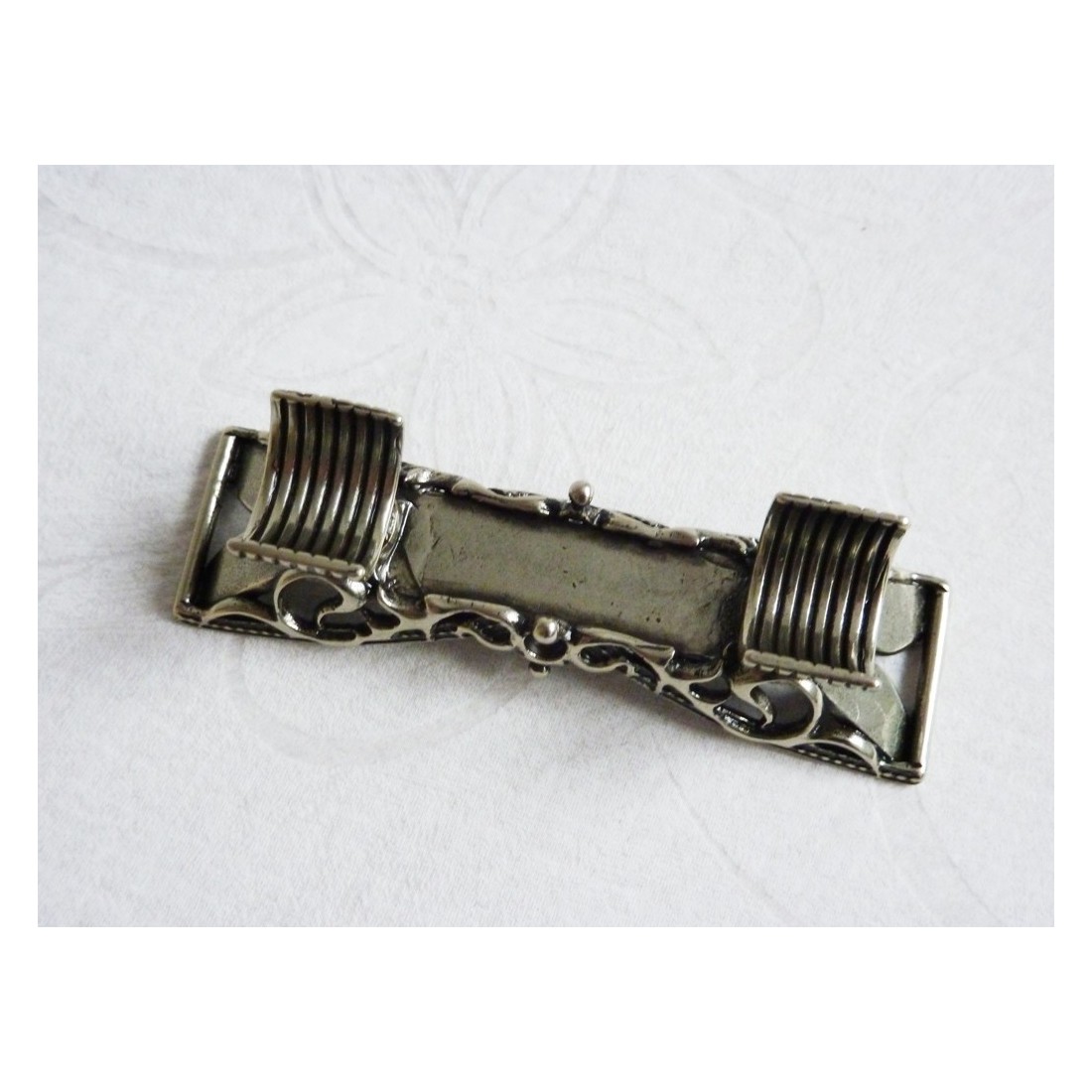 Alpaca kalligrafipennestøtte. En lille perle af design og håndværk, som gør denne vidunderlige penhvil unik. Det realiseres i fint bearbejdet nikkel-sølv. Fremstillet i Italien af Bortoletti Fonderia Artistica. Størrelse: 70mm x 20mm