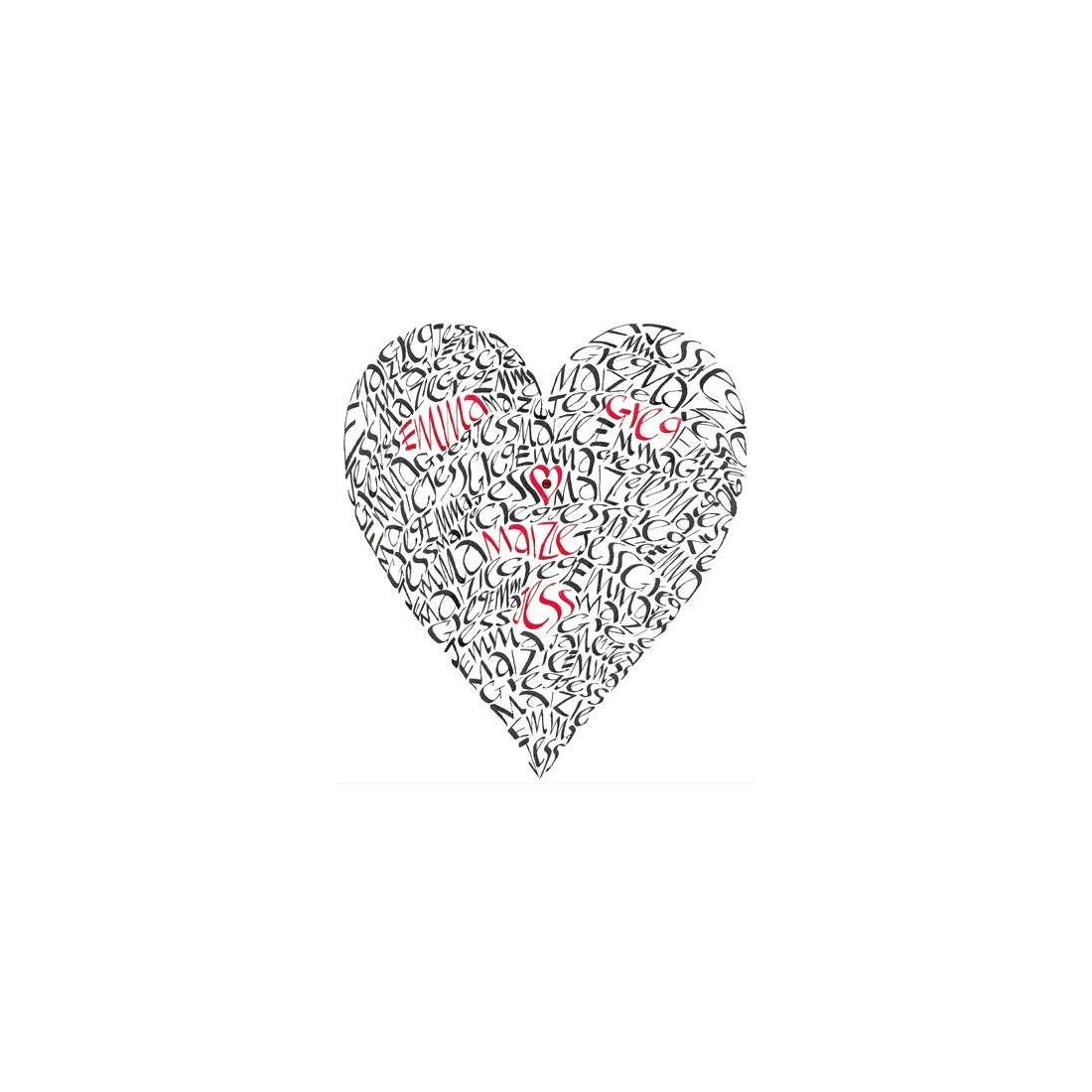 En fantastisk mulighed for at få et fantastisk, skræddersyet hjerte design skabt specielt til dig. Det kaldes "Hjertet af min familie" af en meget god grund - dette vidunderlige stykke har dine efternavne skrevet igennem i Jane's egen kalligrafiske stil. I centrum af hjertet på dette smukke design er en rød diamant.