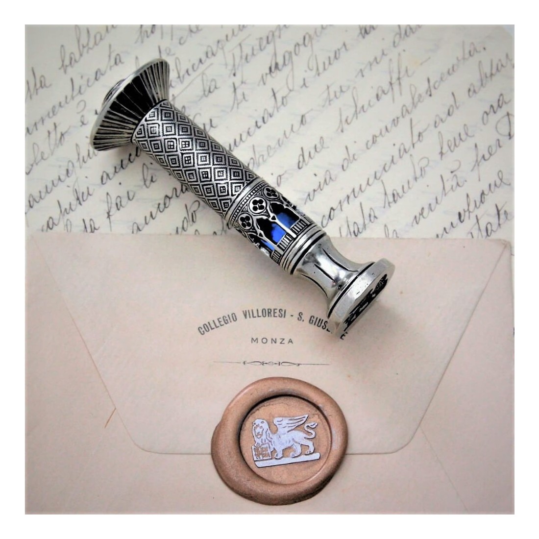 Ducale voksstemplet er et mesterværk af italiensk håndværk. Fremstillet af bronze og Murano glas, er det et sandt kunstværk.