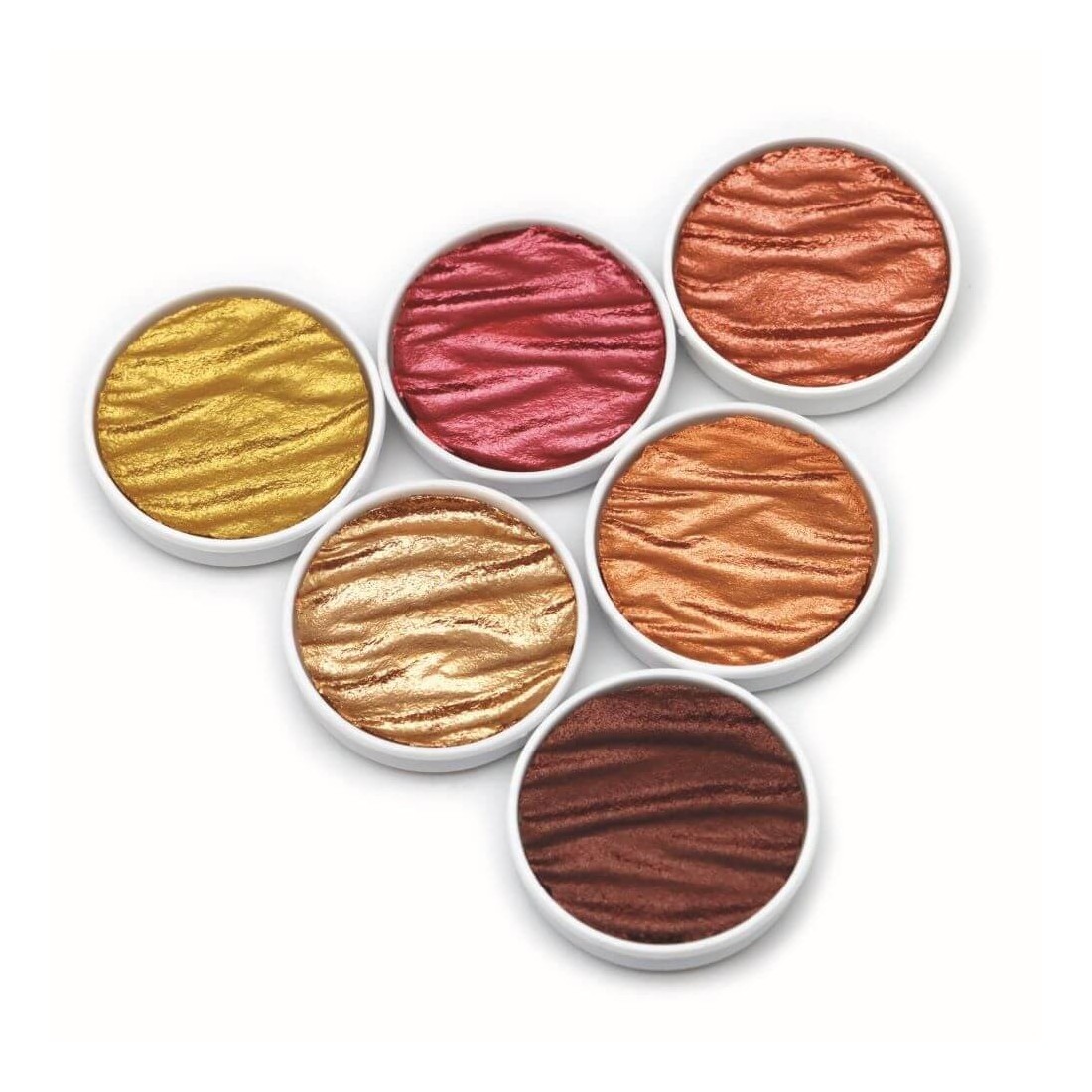 Lavet af glimmer, et naturligt mineral, der tilbyder en bred vifte af metalliske nuancer, fra guld og sølv til iriserende, skinnende perle farver. Aktiver med lidt vand på paletten og gælder for nib med en pensel. Hæfter på alle absorberende overflader, såsom papir, træ, gips, etc.