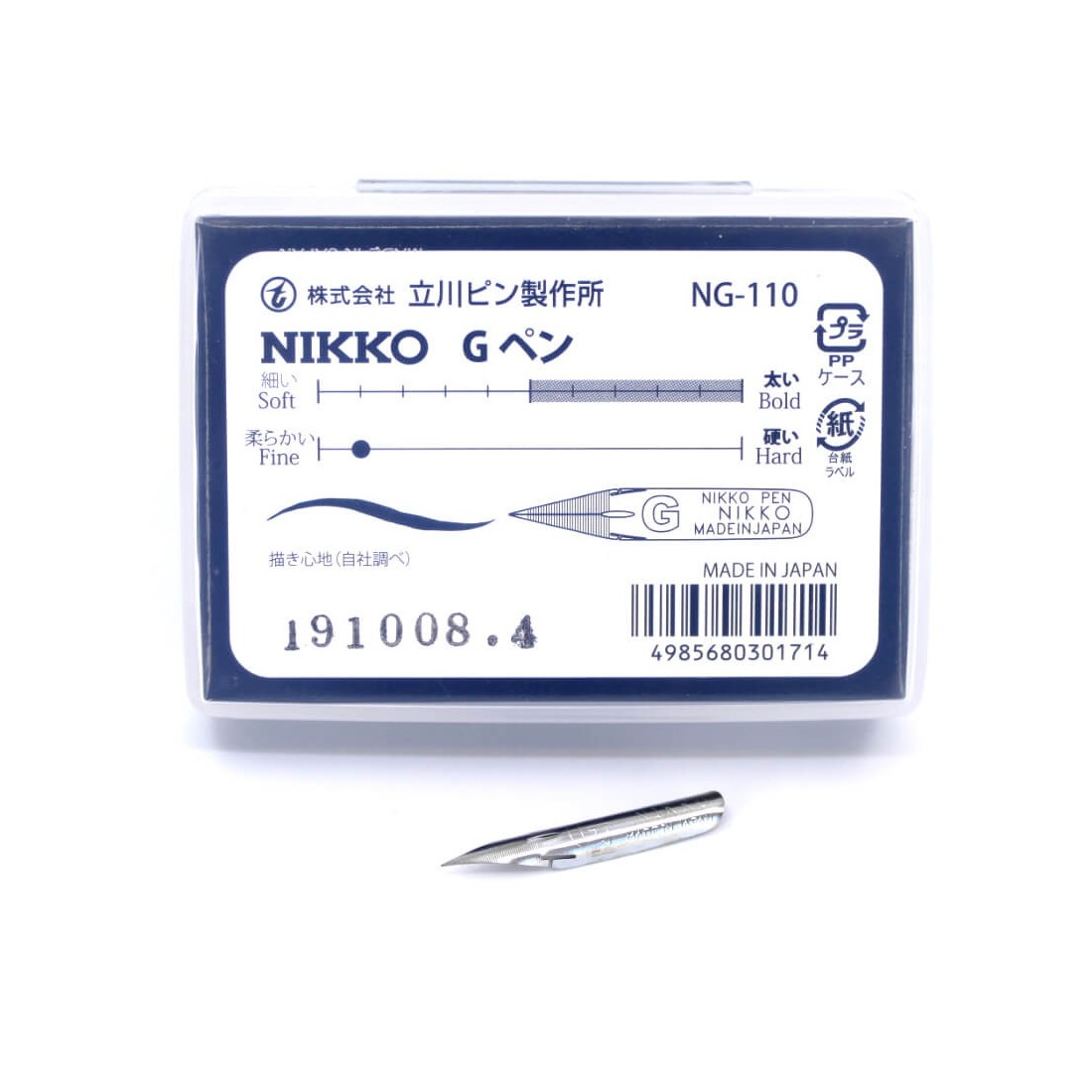 Det japanske mærke Nikko producerer meget gode nibs oprindeligt designet til tegning (Manga). Deres kvalitet og egenskaber gjorde det muligt for dem hurtigt at blive adopteret til kalligrafi. Dette er tilfældet med "G"-spidsen, hvis tyndhed og fleksibilitet nu gør den til en vigtig forudsætning for udøvelse af kobberstik.