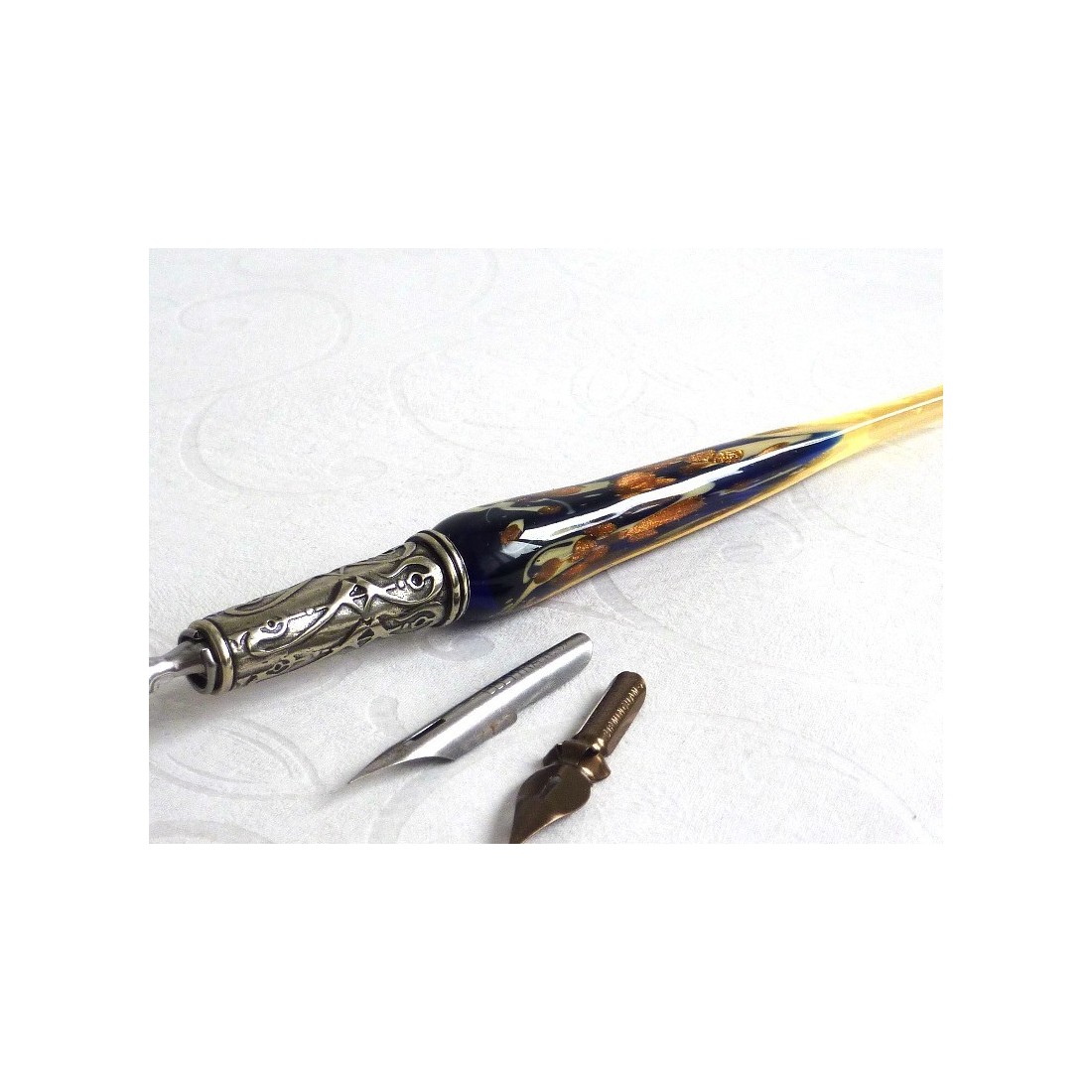 Goldblatt Glaskalligraphie Feder und Tinte