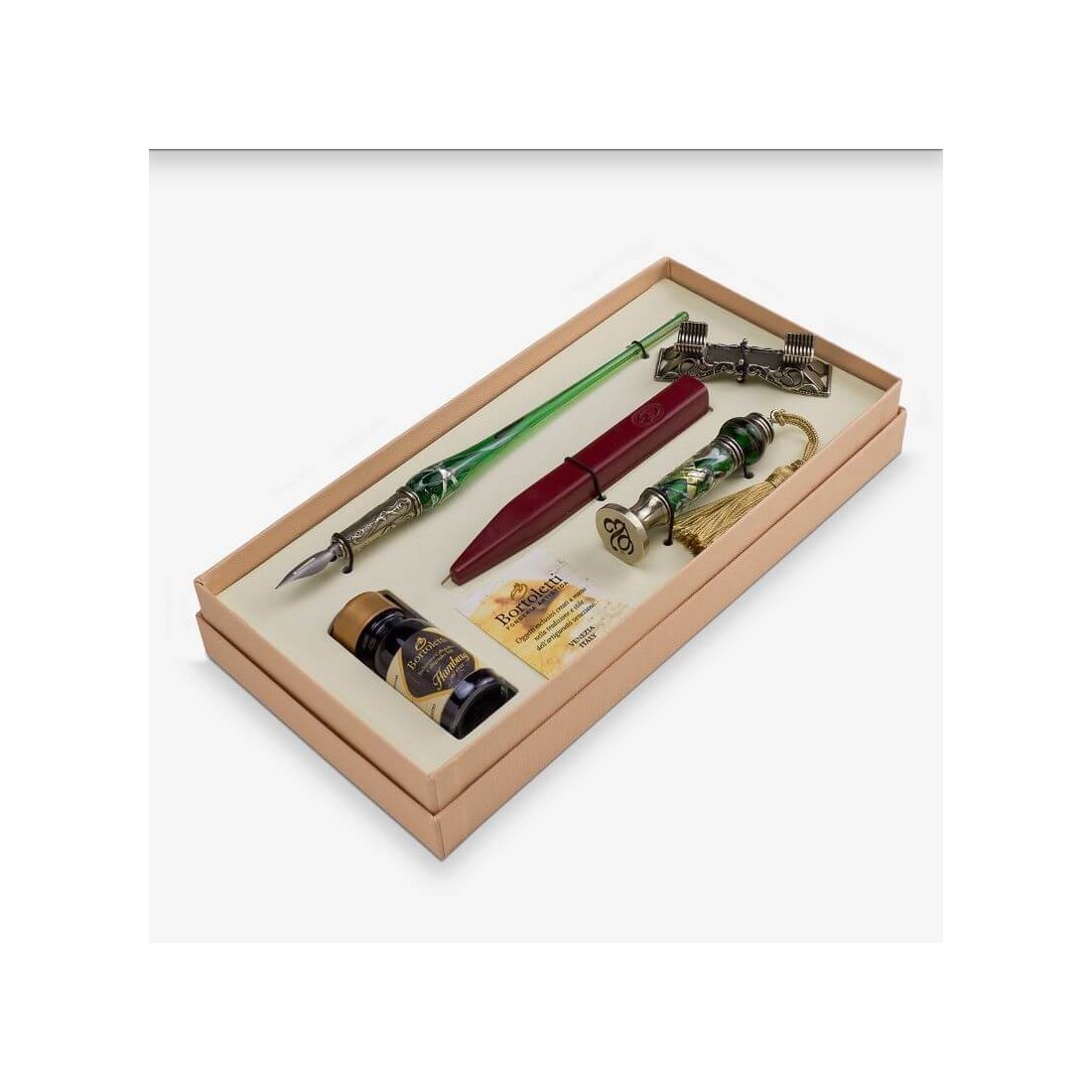 Kugelschreiber und Siegel SET73 Leopardi , schlichtes und elegantes Kalligrafie-Set mit Kalligrafie-Tinte und Siegel aus Muranoglas.