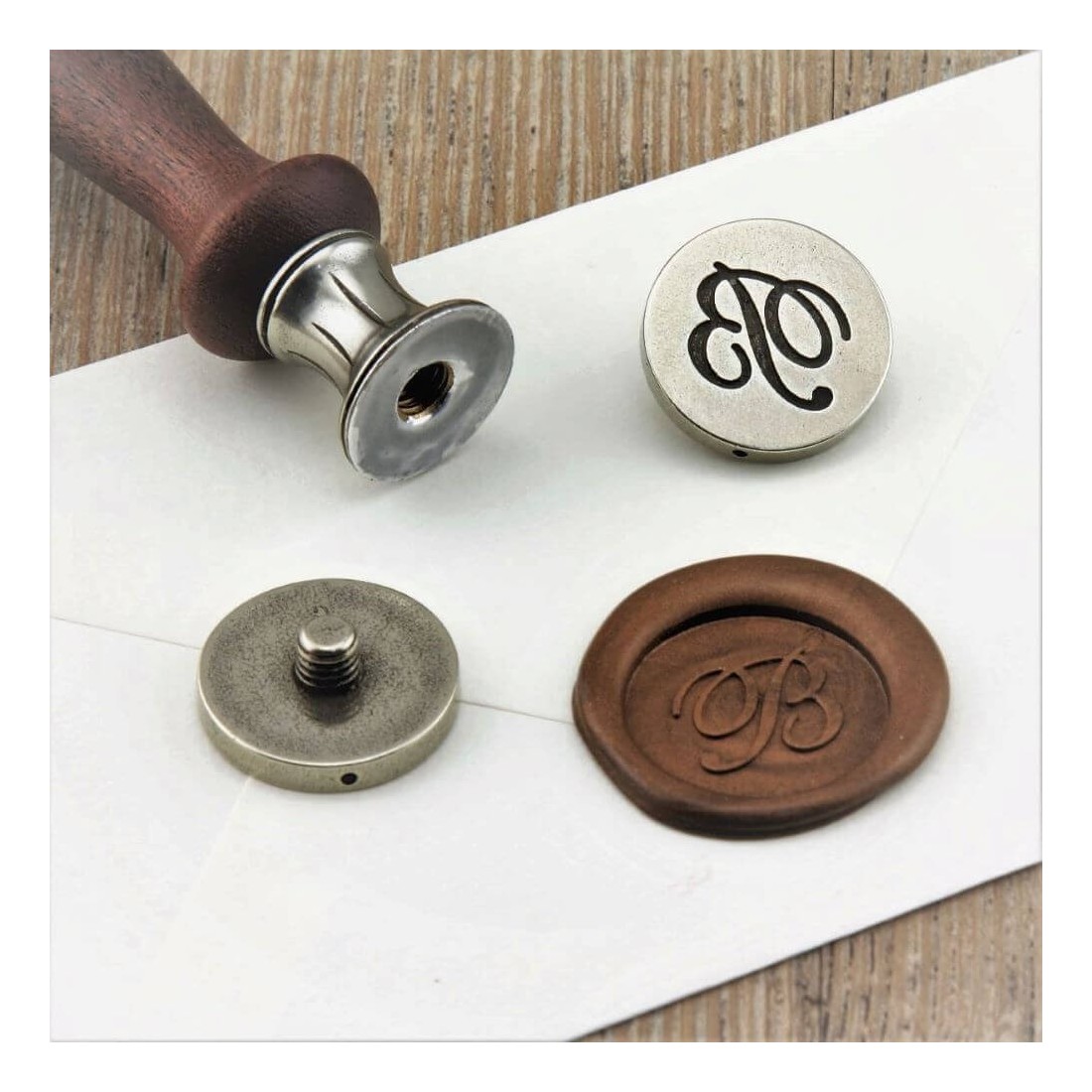 Schaffen Sie einen einzigartigen Eindruck mit diesem eleganten Wachssiegelstempel aus Buchenholz und weißer Bronze. Der Monaco-Stempel SCS001 ist so konzipiert, dass er zu jedem Anfangsbuchstaben oder Symbol aus unserem Katalog passt, sodass Sie ihn nach Ihren Wünschen personalisieren können.