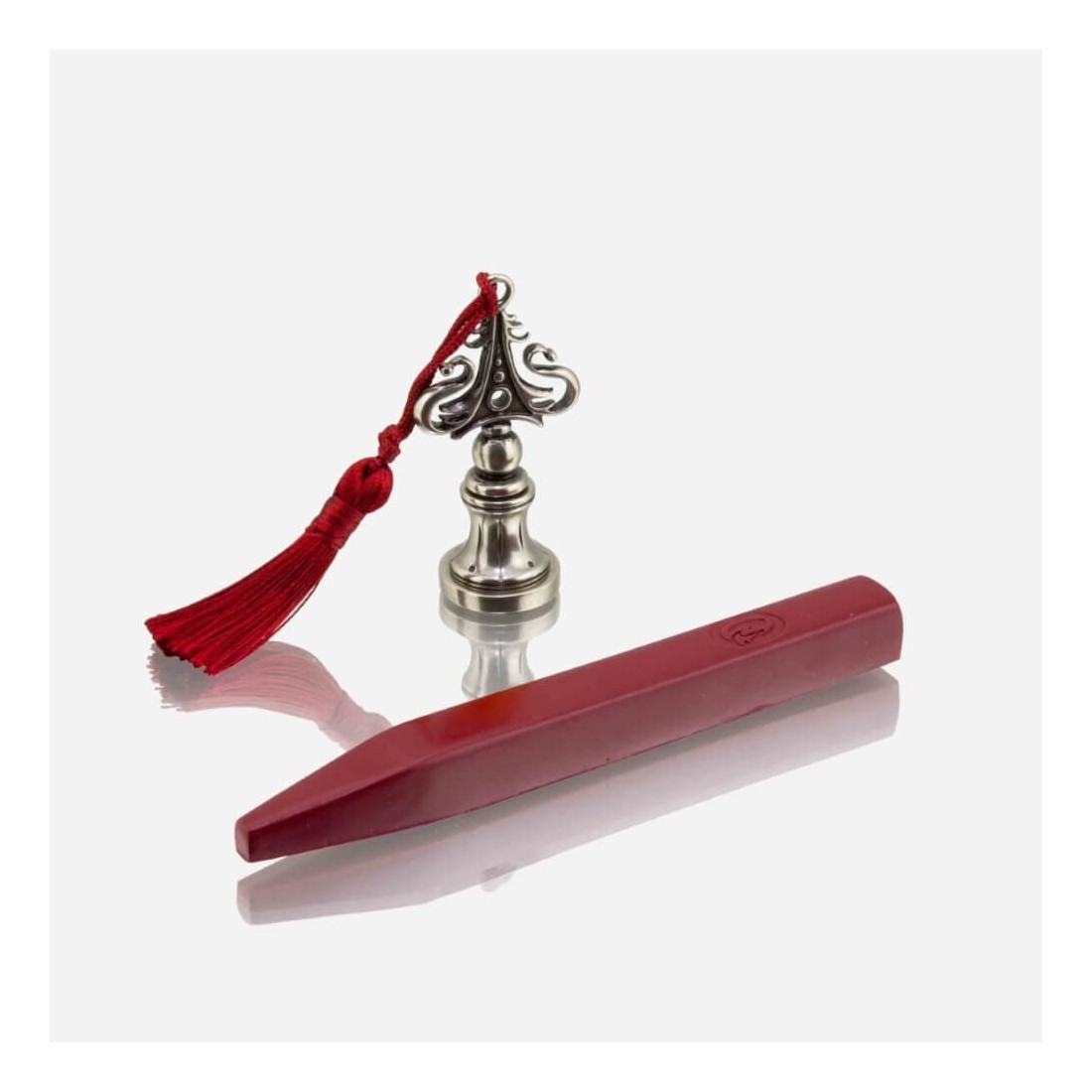 Verleihen Sie Ihren Briefen einen Hauch von Klasse mit diesem exquisiten Wachssiegelstempel aus weißer Bronze, verziert mit einer farbigen Quaste.