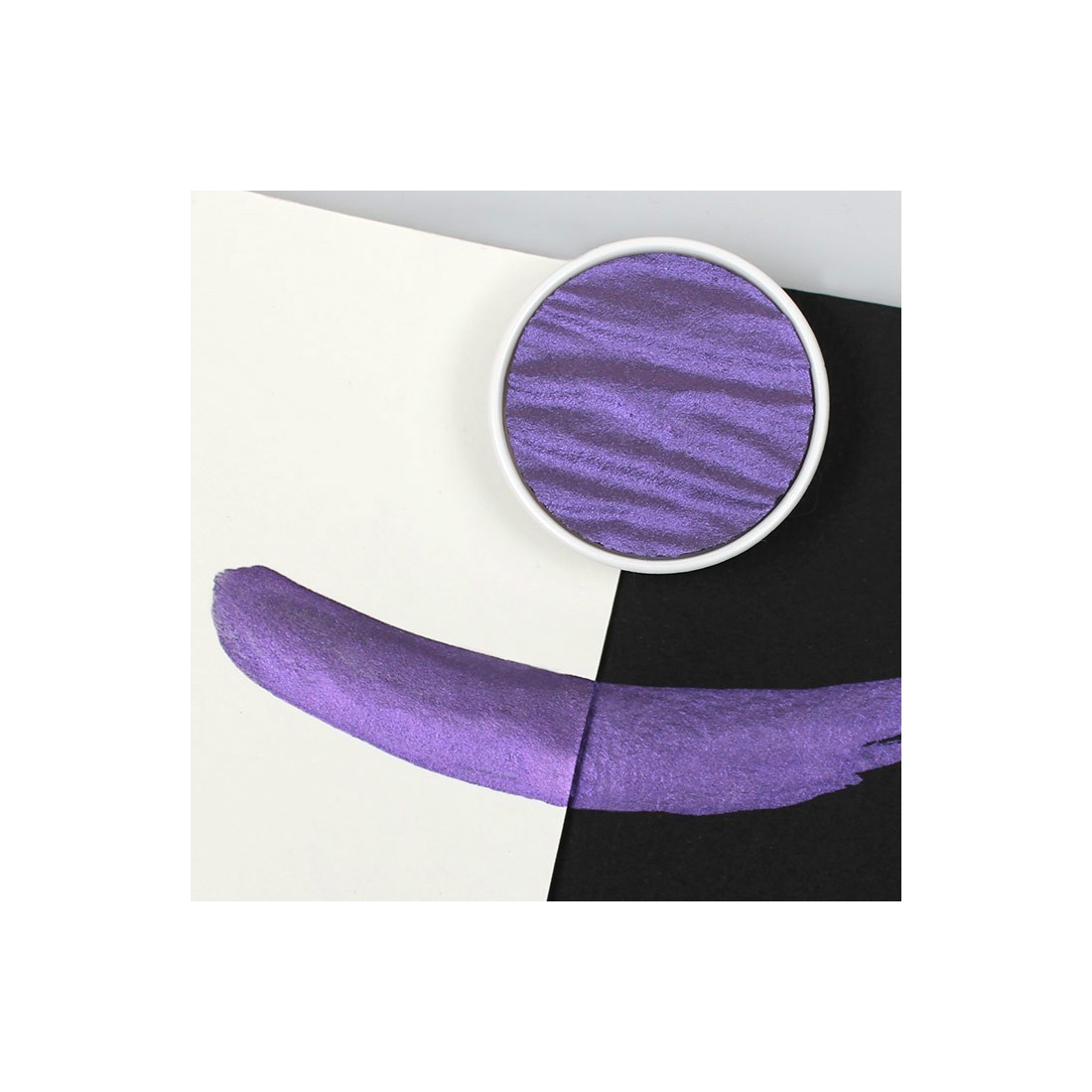 Eine satte 30 mm Deep Purple Pearlcolor-Nachfüllpfanne, handgefertigt, passend für alle leeren Paletten.Mit beschrifteter Verpackung für nahtlose Organisation in einer Palettenbox aus Metall.