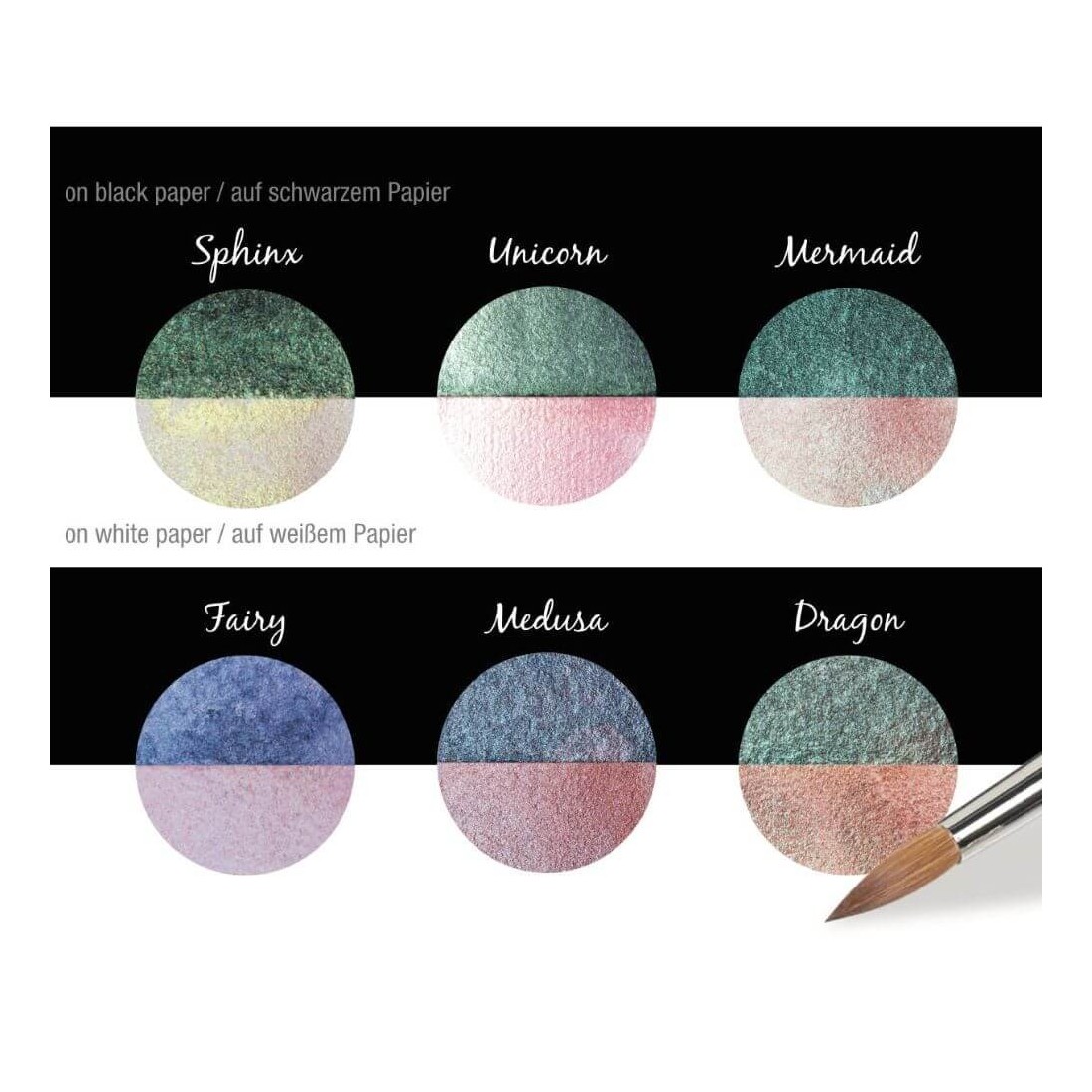 Diese brandneuen Farben sind enthalten: Sphinx, Unicorn, Mermaid, Fairy, Medusa, Dragon.