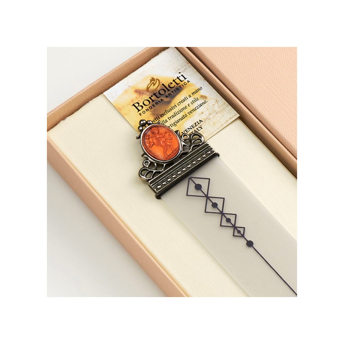 A handmade bookmark for a classy audience that is the result of Bortoletti and his master jewellers' continuous research in the field of design. The processing of glass paste is unique and passed down through generations of Murano’s master glassmakers.