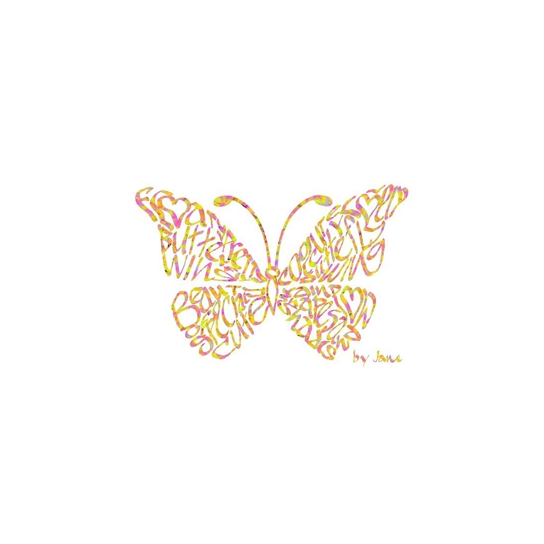 A bright and beautiful confetti coloured butterfly, calligraphic greeting card. Diamantes highlight the wing tips and head while the body and antenna lobes have glitter to bring out a special sparkle.