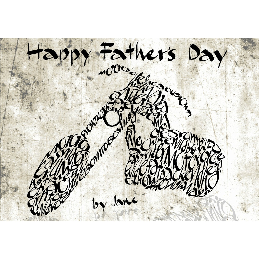 A great Father's Day card from our unique chopper motorcycle inspired handmade card, with many motorcycle related words and phrases throughout the design. Get your motor running! Grunge background style. This gorgeous handmade card has diamantes placed at each end of the handlebars and one larger diamante is placed in the headlight of the bike.