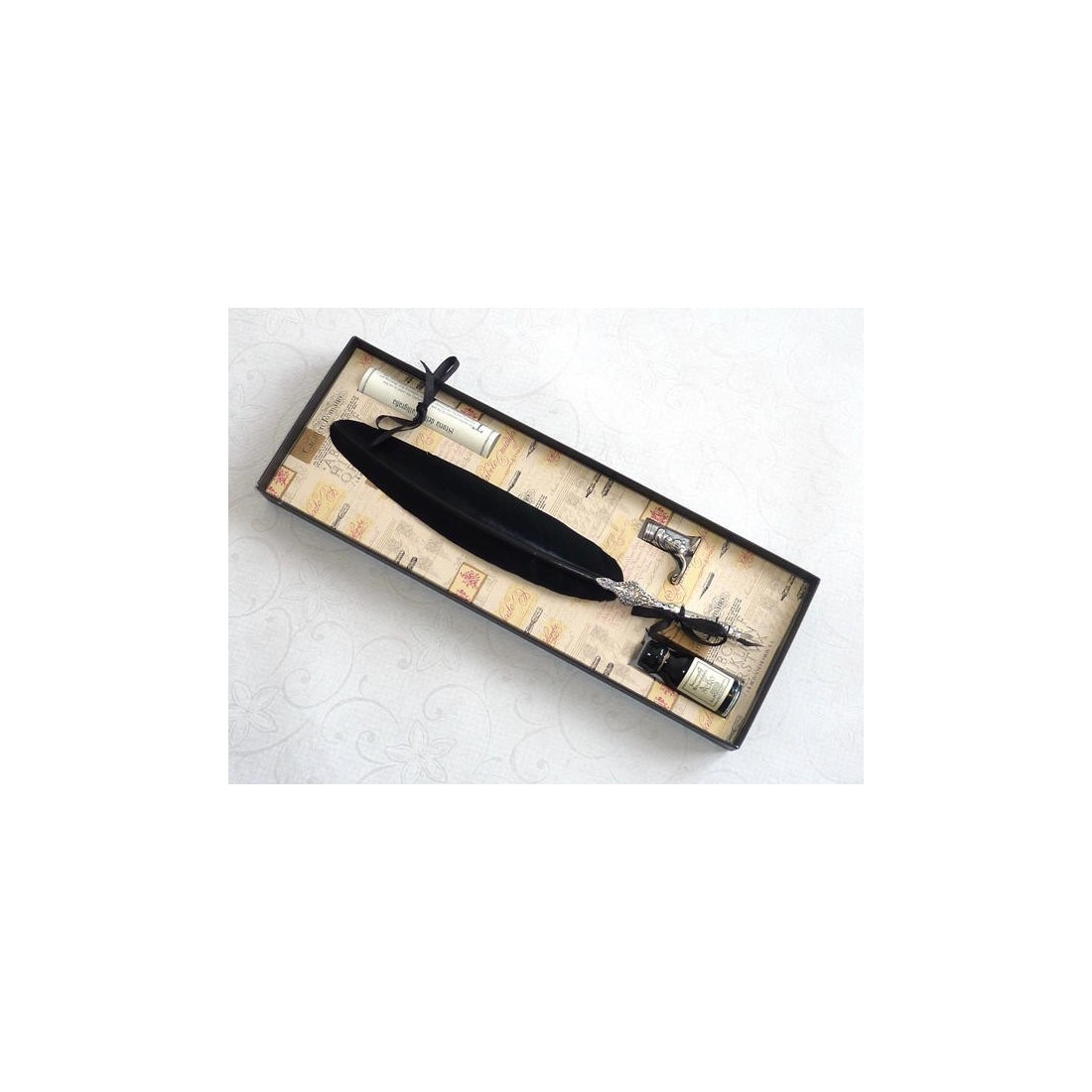 Black Feather Pen, Boot Holder & Ink