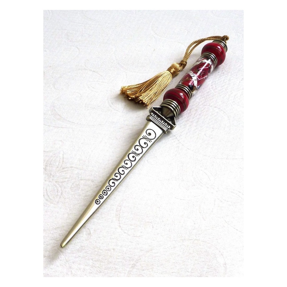 Glass and nickel-silver letter opener. An exquisite Venetian style which has been redefined. This will make an elegant gift and look wonderful on your writing desk. Handmade with Murano glass. Available in various colours.