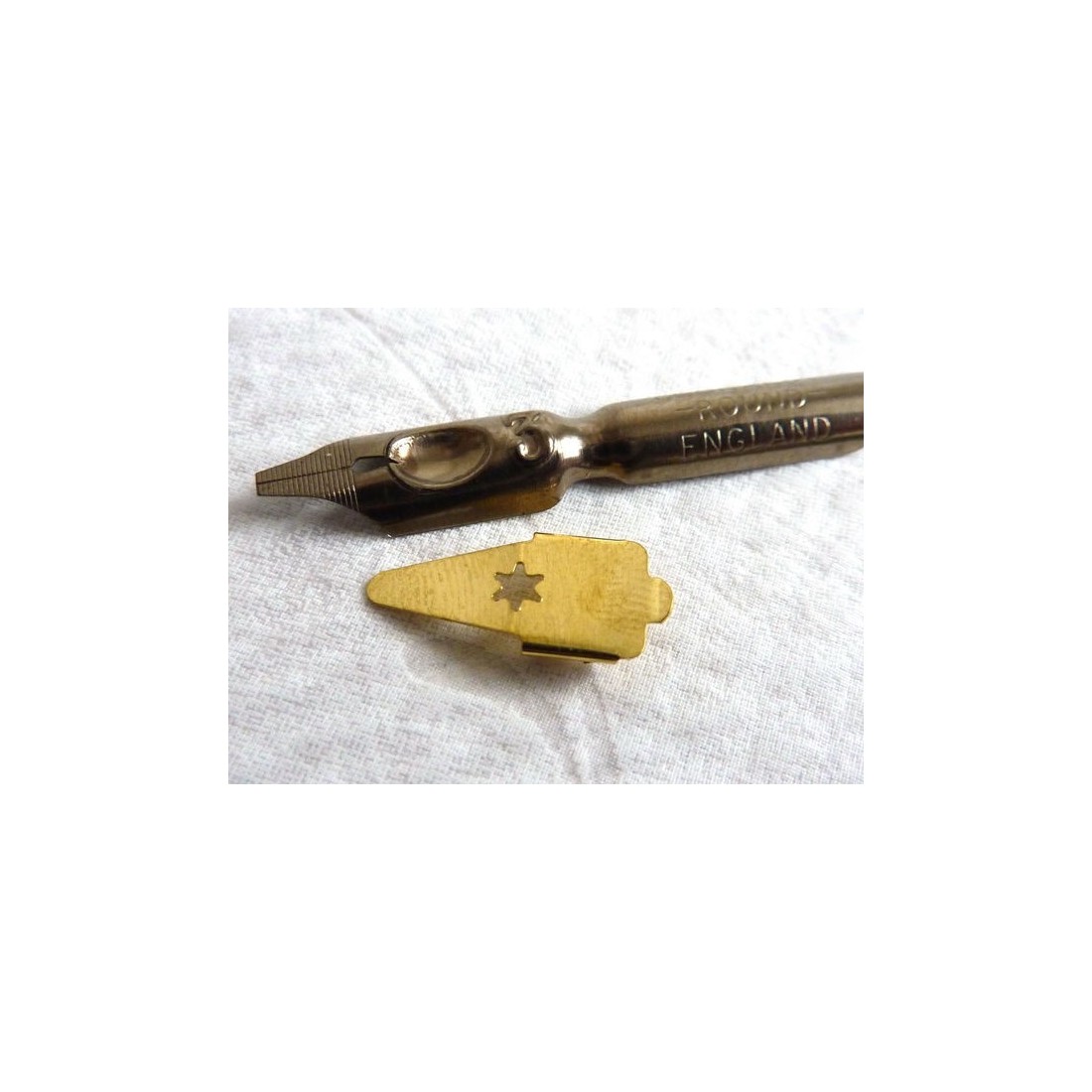 "Round Hand" Nibs and reservoirs. A steel calligraphy nib for beginners and experts alike. The brass reservoir enables you to write more with less dipping of the pen in the ink bottle. Excellent for beginners when using our calligraphy starter packs. Available in different sizes. 0 is the biggest size and 6 is the smallest size. Made by Manuscript in the UK.