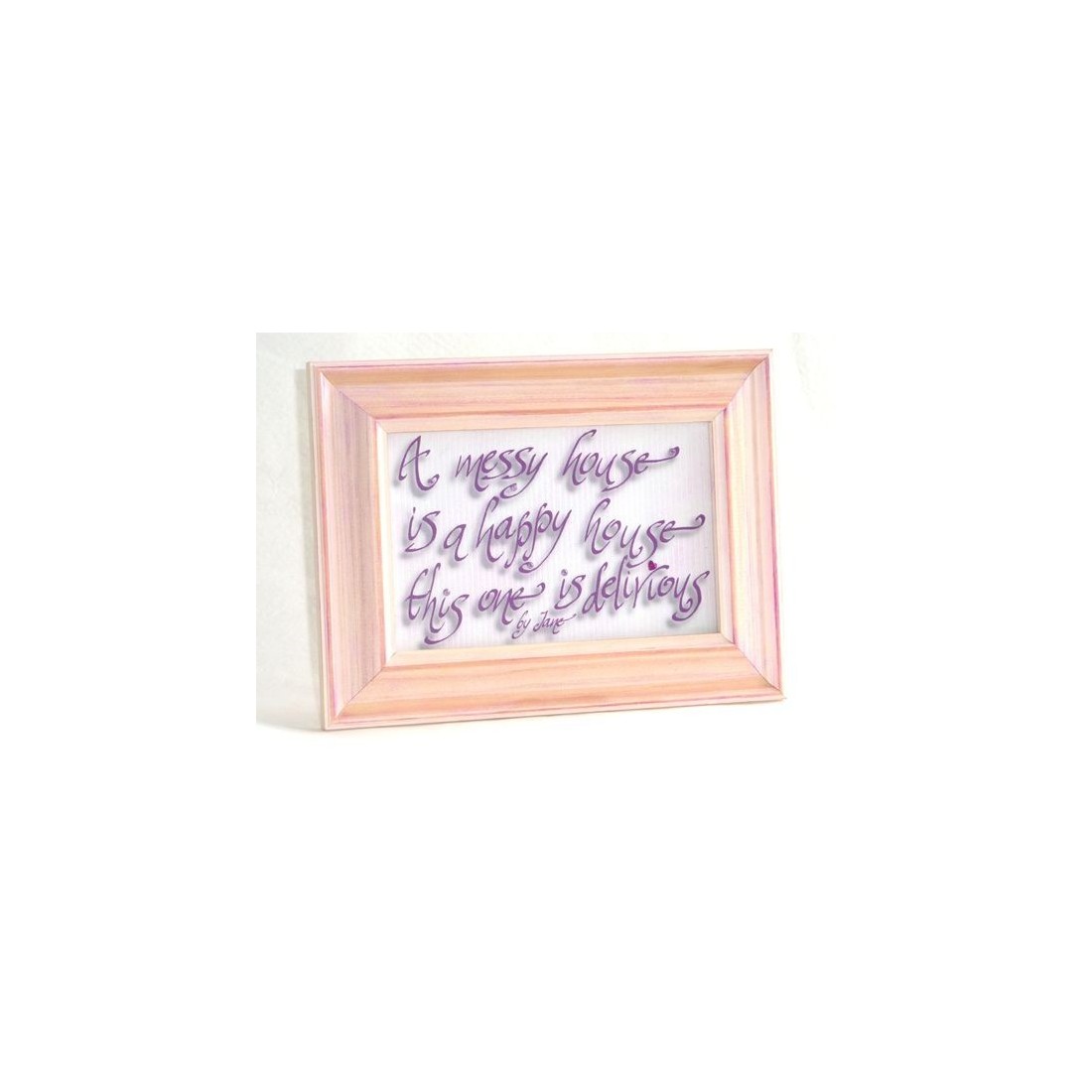 Aquí hay una gran cita enmarcada. "Una casa desordenada es una casa feliz - éste es delirante". Cuya casa le pondrías a?