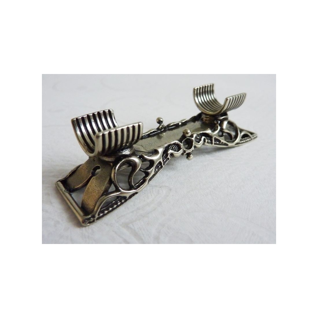 Una cama confortable para su amada pluma y una pequeña perla de diseño y artesanía que hace que esta maravillosa pluma de descanso único. Este pequeño resto de la pluma, en plata de níquel, es un ejemplo del diseño por Bortoletti, caracterizado por un fuerte cuidado por el detalle.