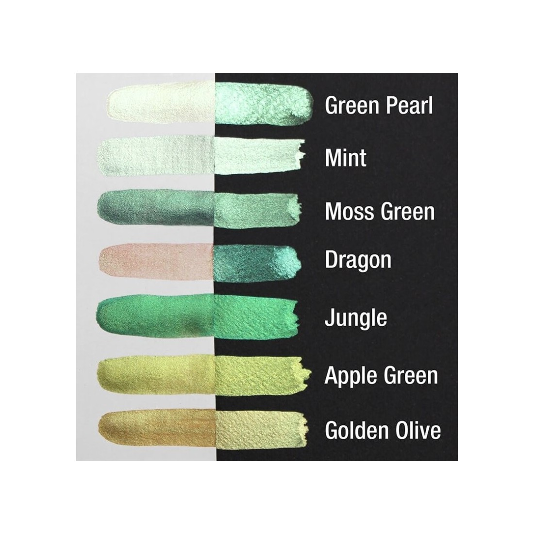 El relleno Jungle Pearlcolor, hecho a mano en Alemania, cuenta con un verde metálico profundo y rico. Incluye embalaje etiquetado para su uso en una caja de paleta de metal.