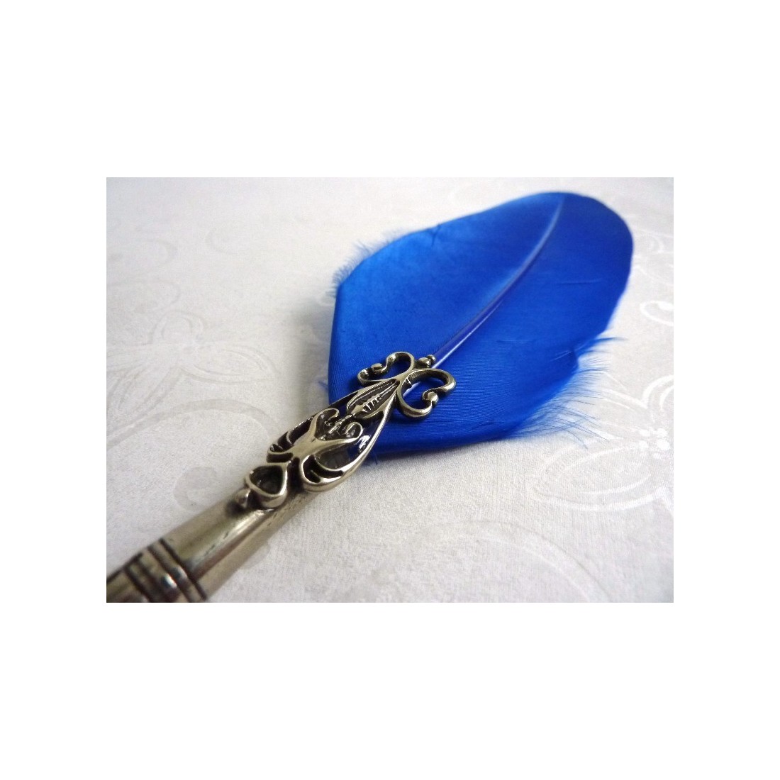 - Pluma de ganso, Bronce bañado en níquel plateado, Vidrio