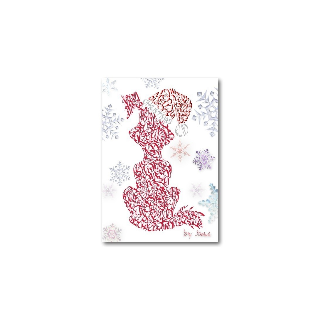 Creado con la caligrafía en palabras, frases y cita todo sobre el mejor amigo del hombre. Esconda el interior para su propio mensaje personal. Esta hermosa tarjeta de Navidad hecha a mano tiene el brillo de plata escribiendo "Navidad de la diversión" en el sombrero y es también en el que muchos de los copos de nieve de la tarjeta. Diamantes también se colocan en el centro de algunos copos de nieve.