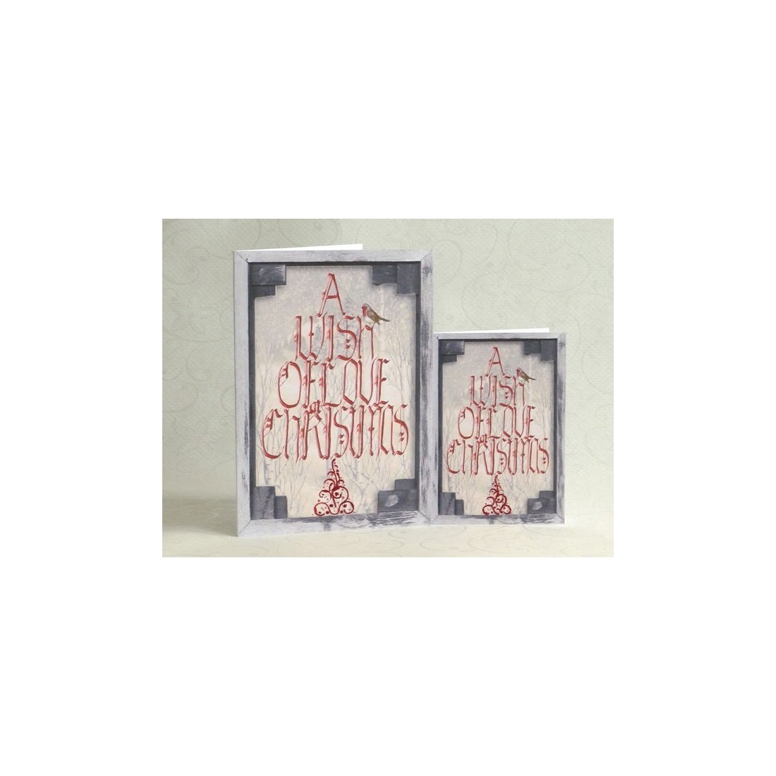 Un Deseo de Amor en Navidad. Sentimientos de moda para esa maravillosa época del año. Red caligrafía gótica diseñada como un árbol sobre un fondo de las maravillas de invierno con brillo rojo espumoso en la base caligráfica.