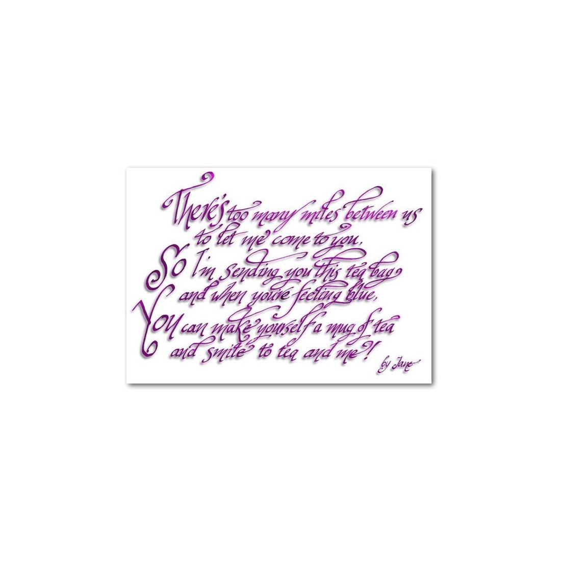 Ihana "Thinking of You" tyyppinen kortti paras ystäväsi tai joku kilometrin päässä ja antaa heille hieman hymyillen. Saatavana Tummansininen ja Tummanvaaleanpunaisen mutta teepussit eivät sisälly ... anteeksi.