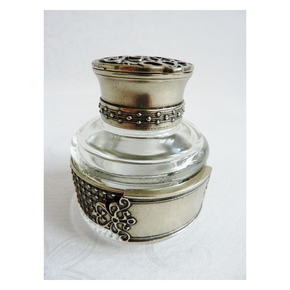 Tämä tyylikäs mustekasetti on valmistettu lasista ja käsityönä valmistetusta nikkelihopesta ja siinä on koristeellinen saranoitu korkki. Pullon etuosassa on tila kaivertaa nimi, mikä tekee siitä ihanteellisen lahjan. Bortolettin mestarikorujen suunnittelema upea mustekasetti tekee kauniista lisäyksestä kirjoituspöytäsi tai kalligrafiasetti.
