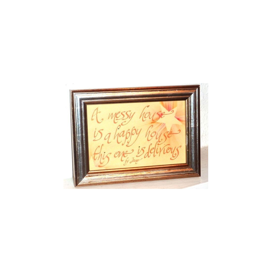 Tässä on loistava kehystetty lainaus. "Sotkuinen talo on iloinen talo - tämä on harhainen". Kenen talo antaisit sen?