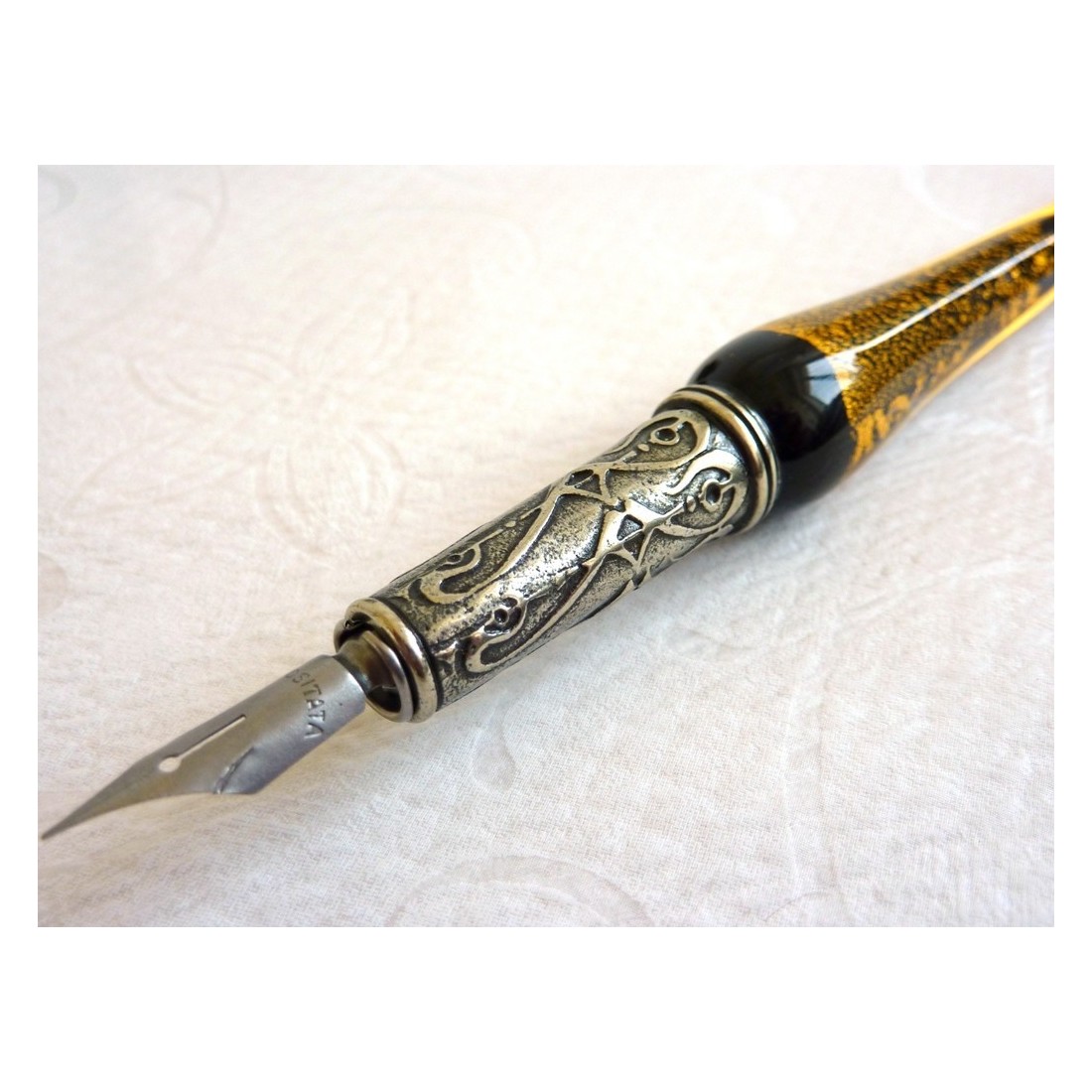 Kauniisti muotoiltu, viimeistelty käsin, kalligrafia dip kynä asettaa Muranon lasista ja Lehtikulta. Sisältää lasin & nickle hopeoitu, pronssi dip kynä, neljä terät ja koristeellinen inkwell. Saatavana erilaisia ihania värejä.