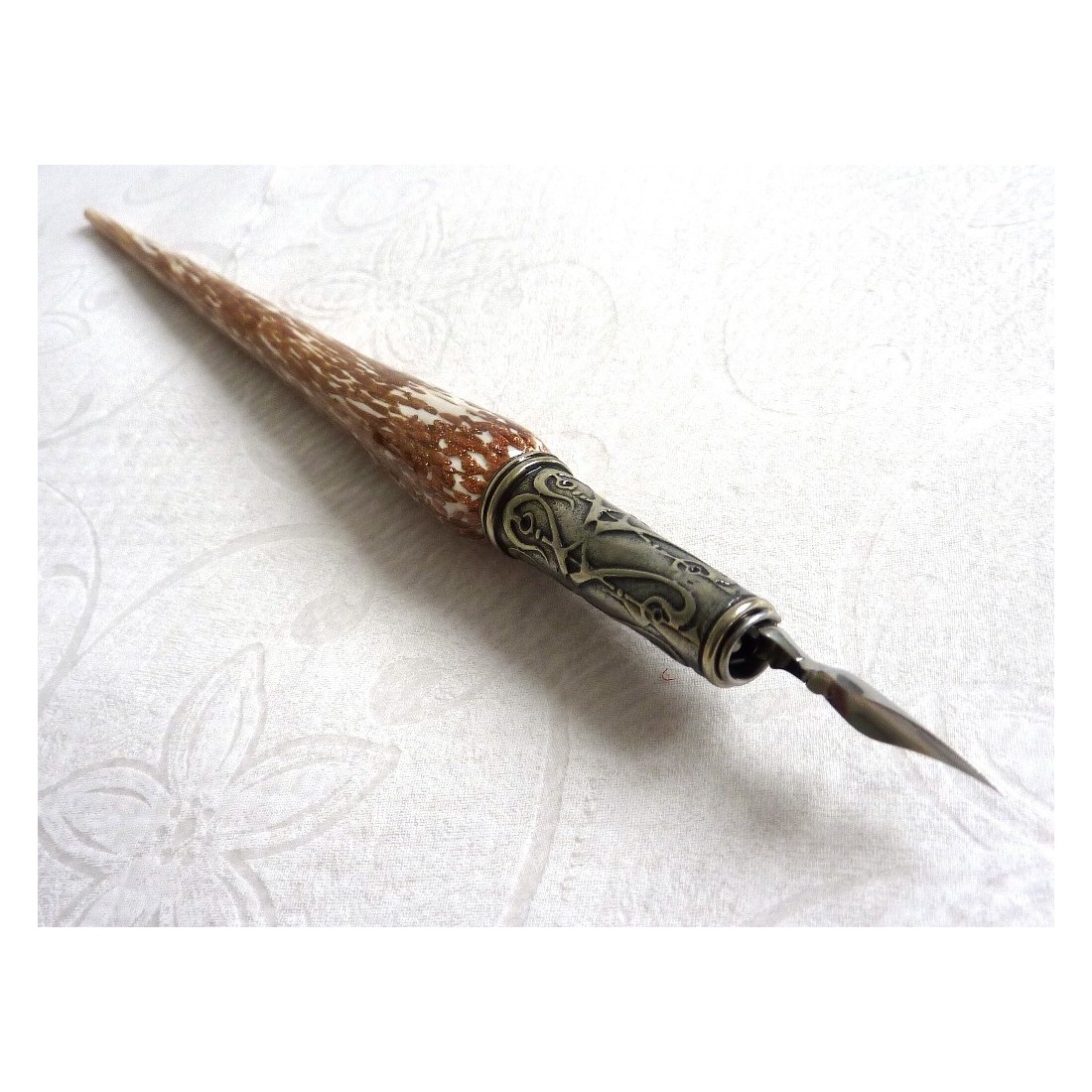 Kuparikiteet ja lasikynäsetti. Kauniisti muotoiltu, käsin viimeistelty kalligrafia-kastekynä, joka sisältää Murano Aventurine -kvartsilasikynän upotettuna kuparikiteillä. Mukana on myös kolme kärkeä ja pullo mustetta. Saatavana useina upeina väreinä.