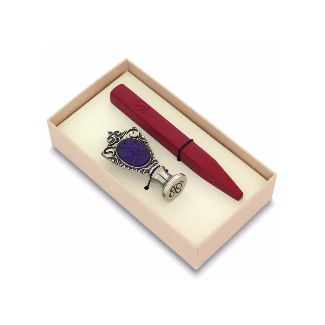 Vahasinettisarja, joka koostuu pronssisesta sinetistä ja lasisesta kameesta, joka edustaa Pyhää Yrjötä ja lohikäärmettä. Yksi sinetti, sinetöintivahapuikko ja astia vahakermaa. Tiiviste ja kahva on viimeistelty nikkeli-hopealla.