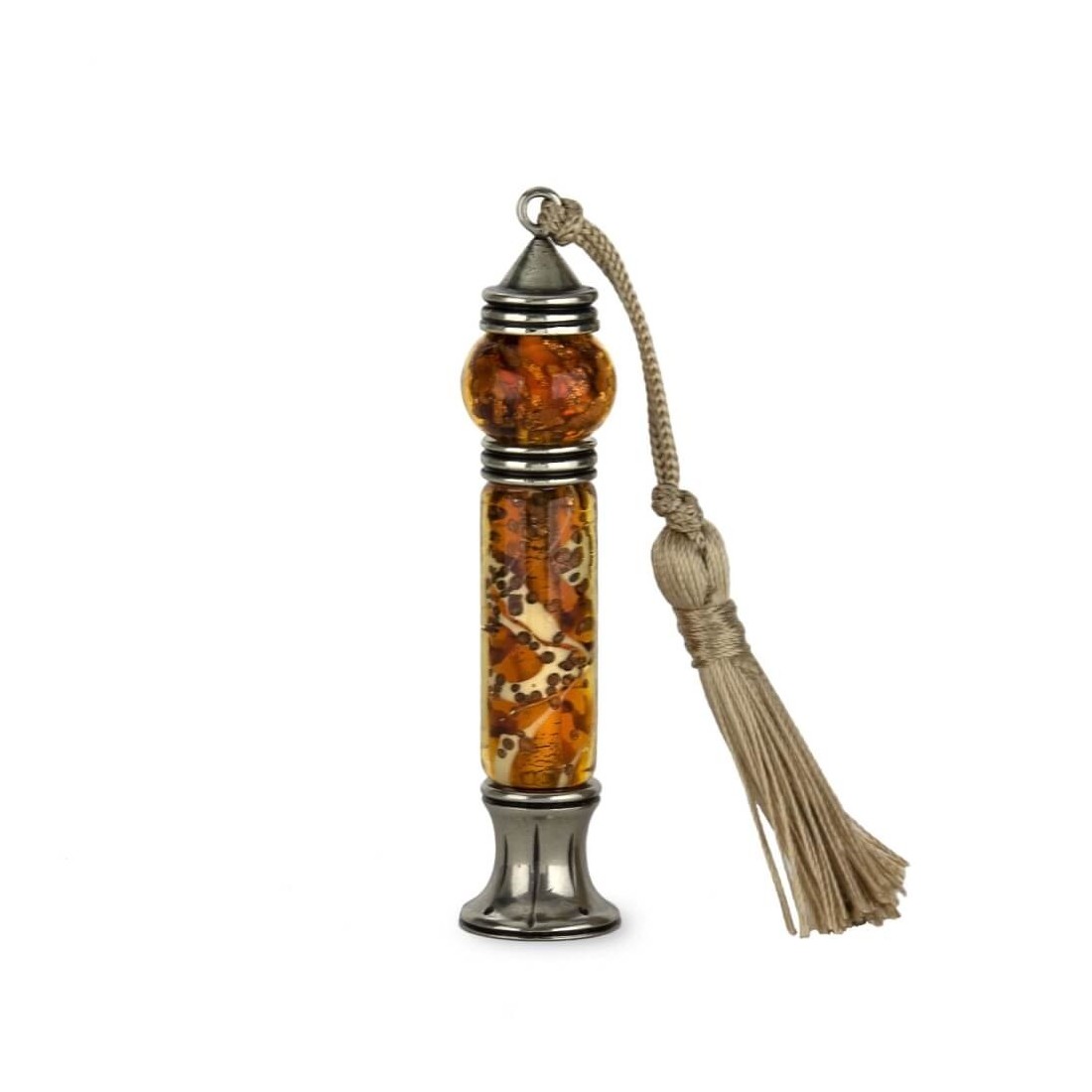 Tämä upea sinetti on valmistettu Muranon lasista ja koristeltu aventuriinilla ja lehtikullalla, mikä tekee siitä todella ainutlaatuisen ja huomiota herättävän tavan sulkea kirjeesi. Valitse nimikirjaimesi tai symbolisi personoiksesi sinettiäsi ja lisää ripauksen ylellisyyttä jokaiseen kirjeenvaihtoon.