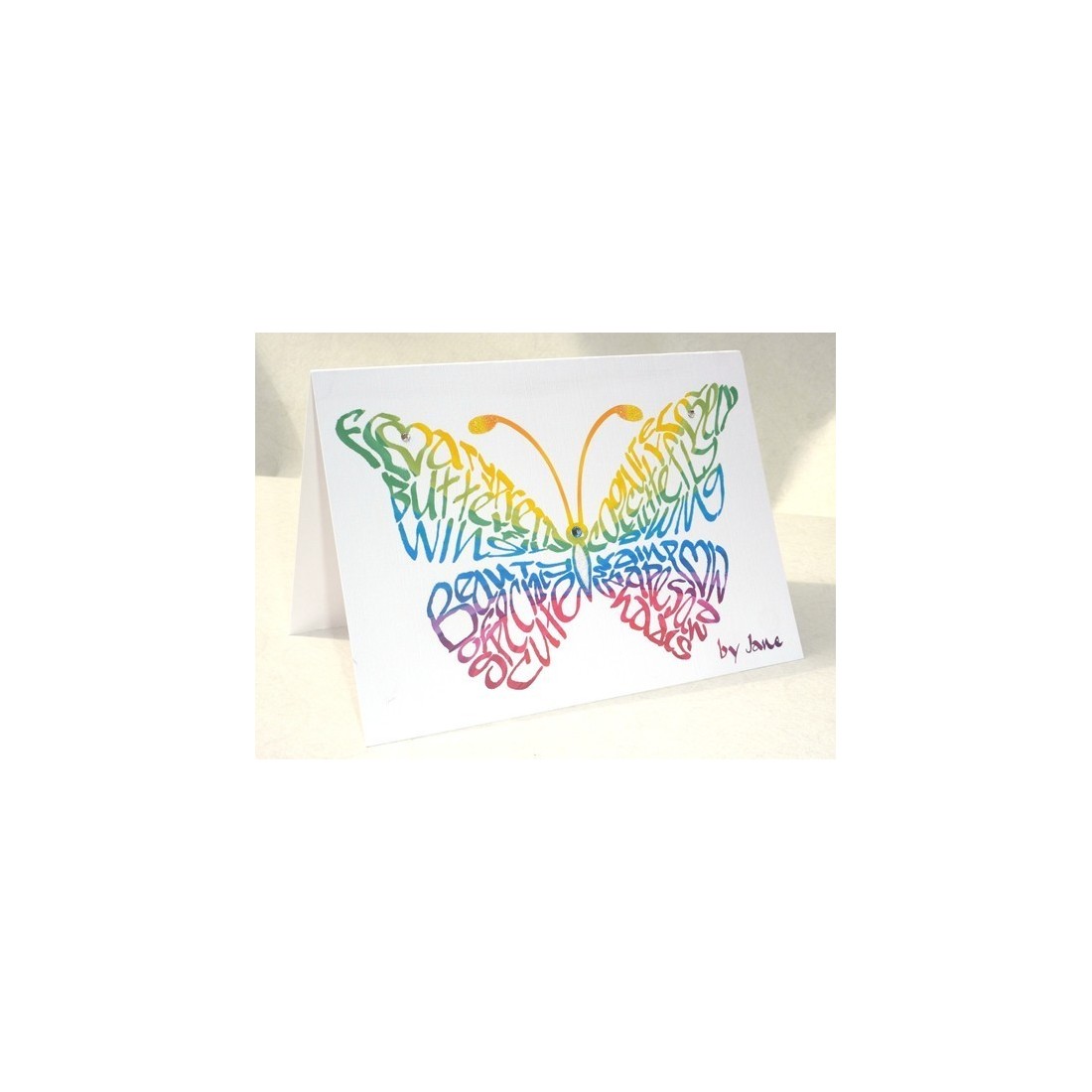 Valoisa ja kaunis sateenkaari värinen perhonen, kalligrafiaa kortin. Diamantes korosta siiven ja pään, kun kehon ja antennin molemmilla on kimallus sovelletaan tuoda esiin erityinen kimallus. Tämä ihana perhonen muotoilu heijastaa herkkää kauneutta kesällä puutarha siivekäs ystäviä.