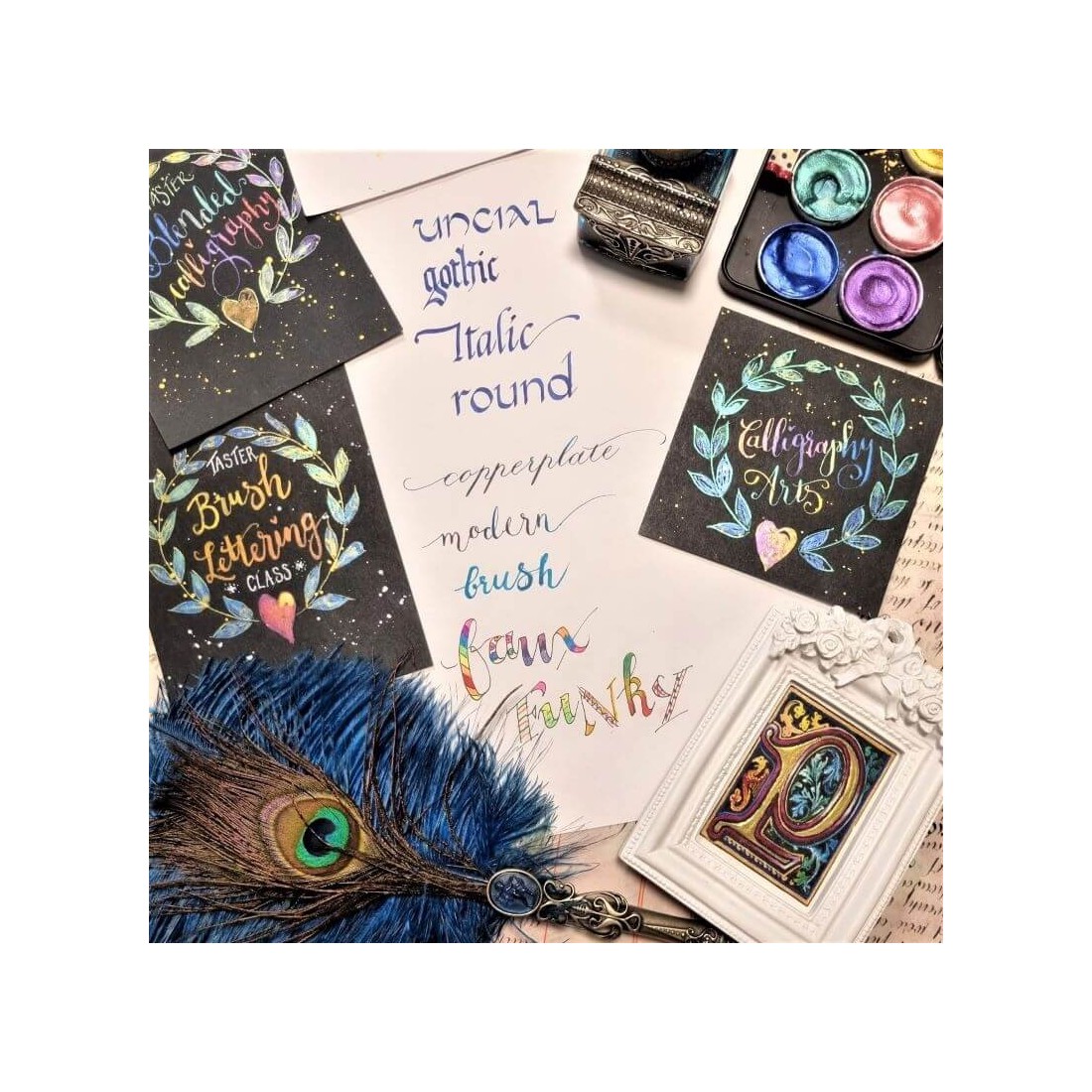 Cette classe est parfaite pour ceux qui veulent expérimenter une variété de styles de calligraphie, d'outils, de techniques et même Embellissements de feuille d'or dans un environnement amusant et détendu.