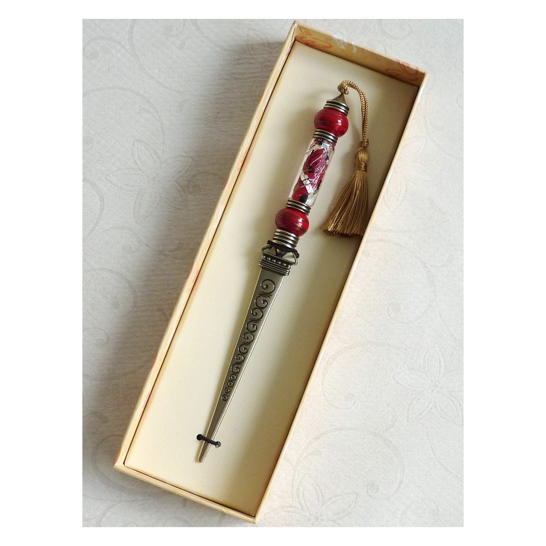 Coupe-papier tout-à-fait conforme à la description, un très bel objet artisanal et unique.