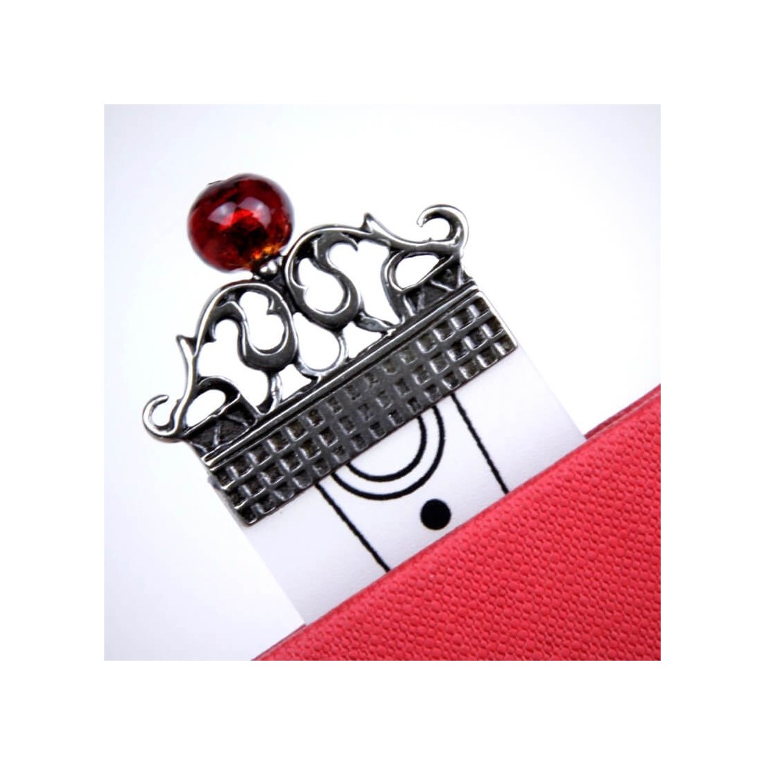 Marque-page au décor en bronze blanc agrémenté d'une perle de verre de Murano colorée pour conserver la marque. Le feu, le verre de Murano et les mains de nos maîtres artisans sont l'énergie génératrice de nos produits.