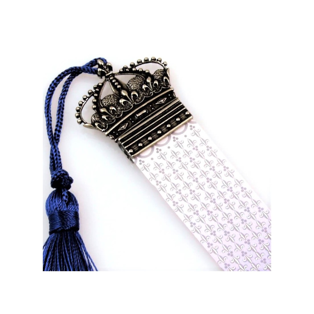 Marque-page couronne fait à la main avec décoration en bronze blanc représentant l'emblème de la couronne royale française.