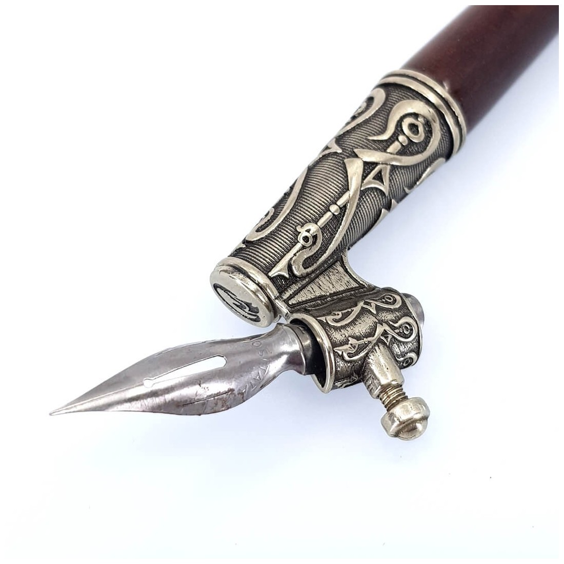 Stylo en bois oblique avec porte-plume en bronze pour la calligraphie moderne et cuivre.