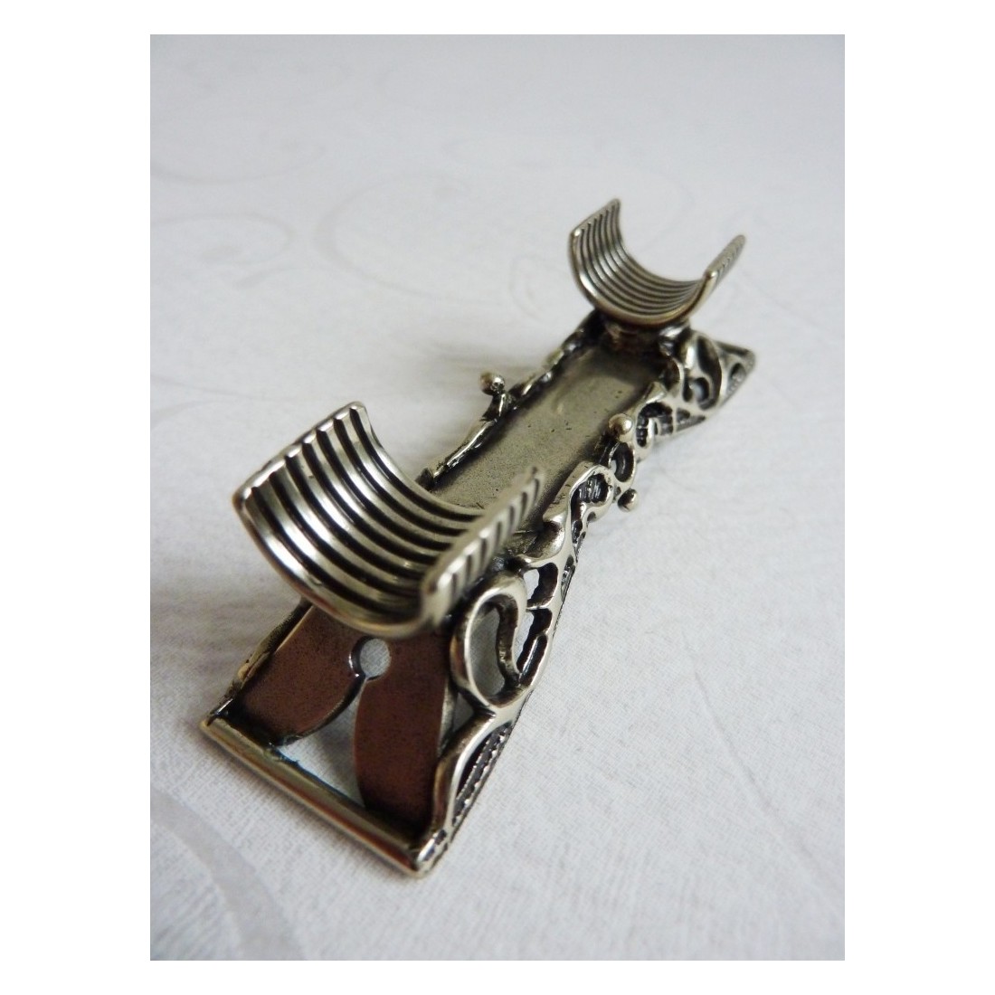 Repose-stylo alpaga. Une petite perle de design et de savoir-faire qui rend ce merveilleux repose-stylo unique. Il est réalisé en maillechort finement travaillé. Fabriqué en Italie par Bortoletti Fonderia Artistica. Taille : 70 mm x 20 mm