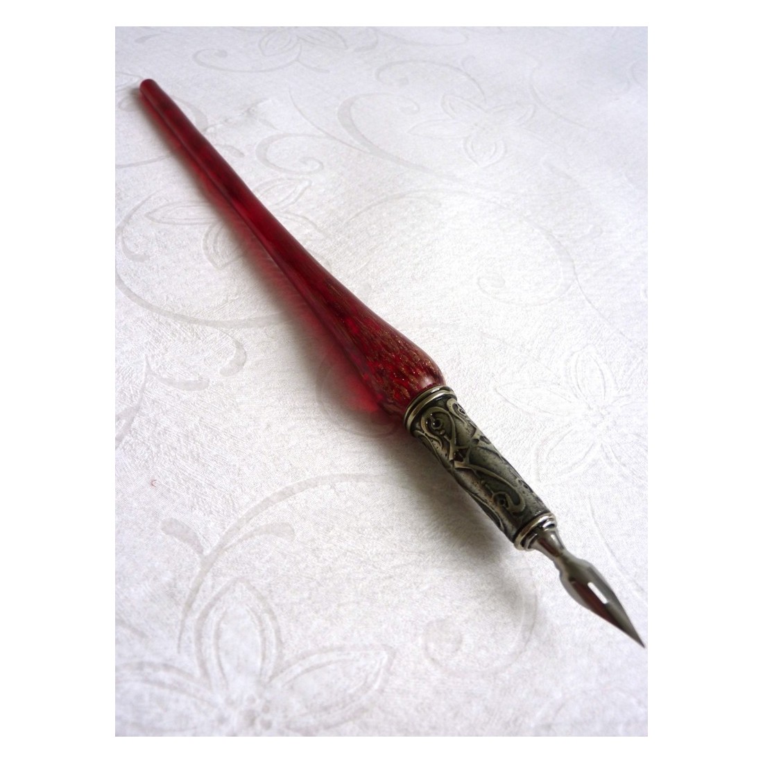 Ensemble de stylos en verre et cristaux de cuivre. Un ensemble de plumes de calligraphie magnifiquement conçu, fini à la main, comprenant un stylo en verre de quartz Murano Aventurine incrusté de cristaux de cuivre. Sont également inclus trois plumes et une bouteille d'encre. Disponible dans une gamme de couleurs merveilleuses.