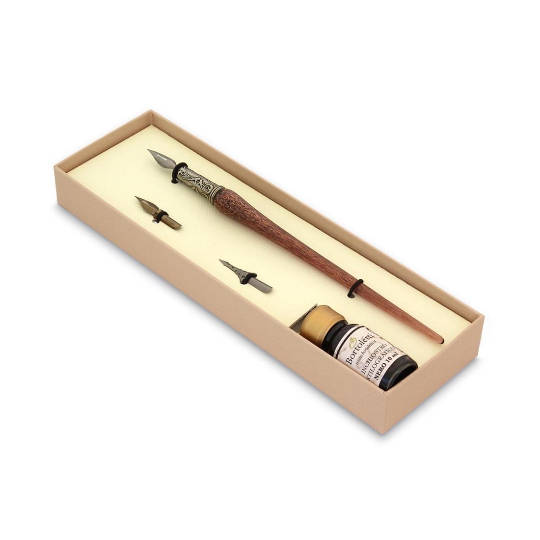 Ensemble de stylos en verre et cristaux de cuivre. Un ensemble de plumes de calligraphie magnifiquement conçu, fini à la main, comprenant un stylo en verre de quartz Murano Aventurine incrusté de cristaux de cuivre. Sont également inclus trois plumes et une bouteille d'encre. Disponible dans une gamme de couleurs merveilleuses.