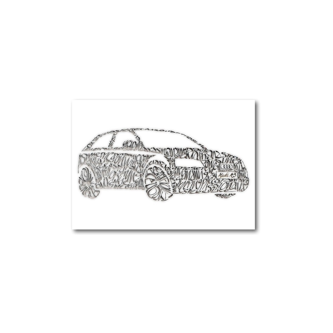 Qui aime les voitures? Une voiture Audi A3 créé à partir de mots et expressions sujet de la voiture et le nom Audi. Il a même un effet de chrome pour tout le lettrage et la façade peut être personnalisée trop - choisir parmi diverses occasions. Vorsprung Durch Technik!
