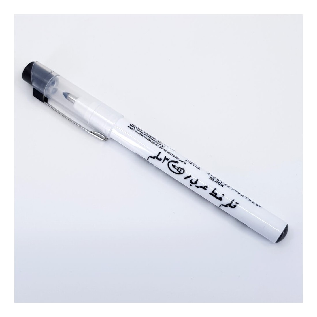 Pennarelli singoli in corsivo sinistrorso. Un pennarello nero per calligrafia corsivo con punta obliqua da 3 mm. Prodotto da Kuretake ZIG in Giappone.