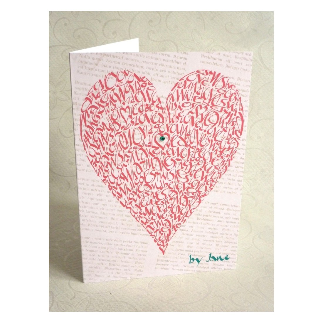Grande per il giorno di San Valentino, ma anche un altro modo per mostrare i tuoi sentimenti per la persona amata in qualsiasi momento dell'anno. Una carta a mano bella ed unica nella forma di un cuore di San Valentino. Progettato utilizzando la calligrafia in parole, frasi che celebrano l'amore e la felicità. Superba carta mano ha diamantes posizionati ai lati del testo nella parte inferiore della scheda e anche nel cuore al centro della carta.