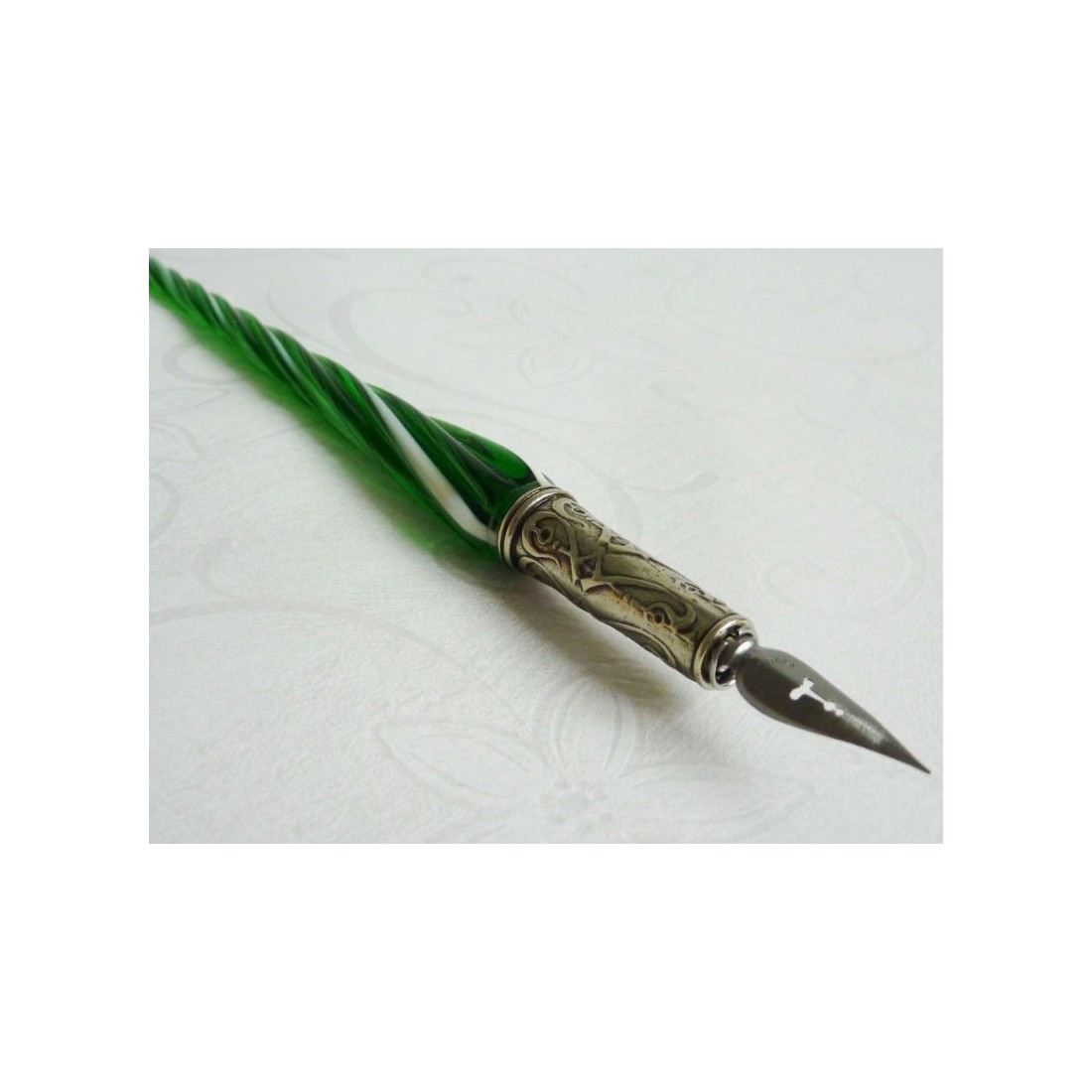 Una penna in vetro contorto veneziano. Splendidamente artigianale, rifinito a mano, set calligrafia per chi ama lo stile e l'eleganza di Venezia. Comprede un albero di vetro contorto con una penna in argento nichel, tre penne e una bottiglia di inchiostro. Disponibile in una gamma di colori. Prodotto in Italia da Bortoletti Fonderia Artistica.