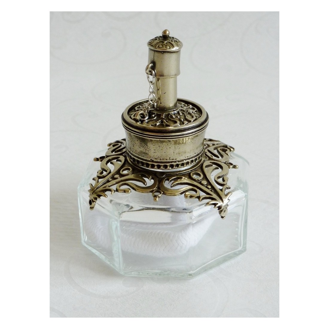 Un riscaldatore di ceralacca ornato. Questo elegante scaldacera è il fiore all'occhiello della produzione Bortoletti. Nasce da un progetto realizzato dai loro maestri gioiellieri ed è un gioiello di design realizzato in vetro e alpacca cesellata. Questo meraviglioso riscaldatore farà una bella aggiunta alla tua scrivania o al tuo set per calligrafia.